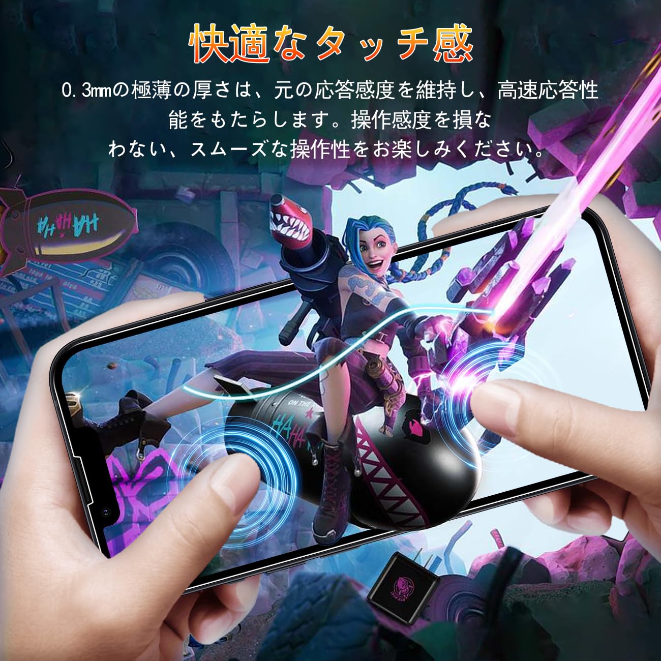 【透過率99%・心地よい肌触り】:液晶画面保護ガラスフィルムを改善した後、約99%の高透過率に達し、もっと高い透過率及び、超クリアな視覚体験を実現します。そして耐用性が高い撥油コーティングし、滑らかで快適な肌触りがあり、快適な操作性が長く持ちます。普通のフィルムのようなざらざらしたタッチ感がまったくなく、指がスムーズにスライドすることができるので、ゲームプログラムに最適、液晶画面の鮮明さを影響しなく、画面本来の美しさをそのまま再現します。【99%以上の場合に干渉しません】液晶画面保護ガラスフィルムは本体のエッジにゆとりを持ったデザインを使って、サイズも適用し、液晶画面をカバーしながらスマホケースと干渉しなく、一緒に使えます。多くの設計したボックスの取り付けるテストを行い、99%以上のボックスに適用します。