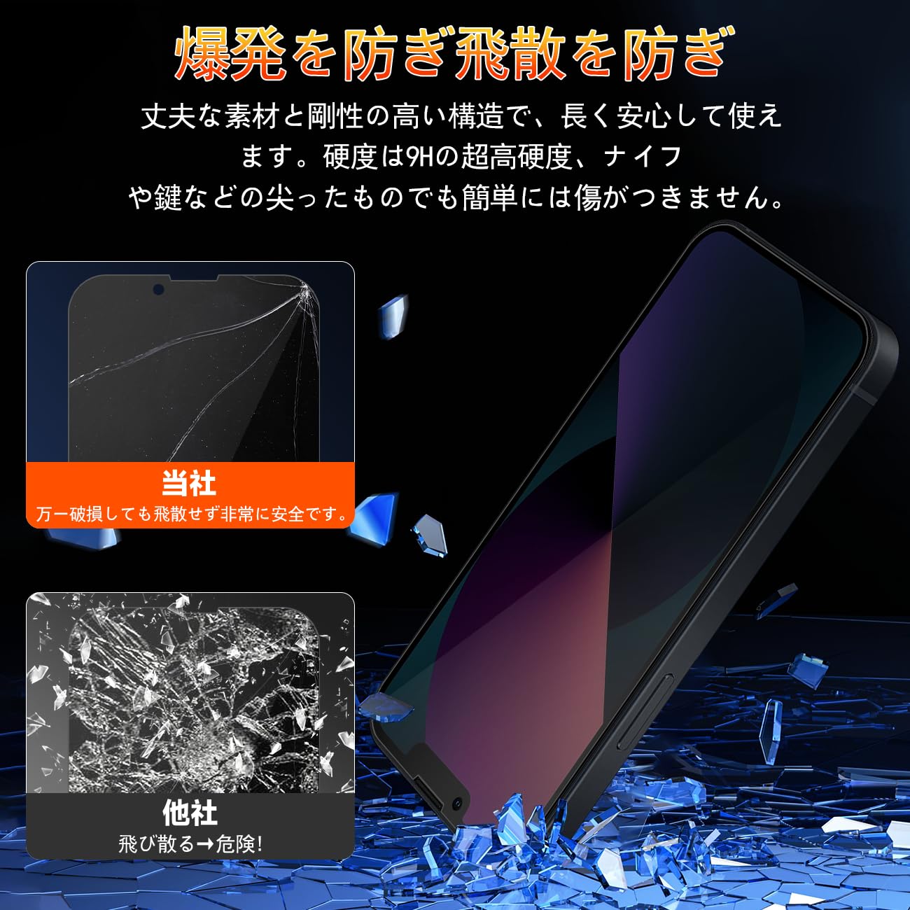 特徴 左右つ方向のぞき見防止 旭硝子製 硬度9H プライバシー保護 ケースに干渉せず 気泡ゼロ 撥油性 指紋防止