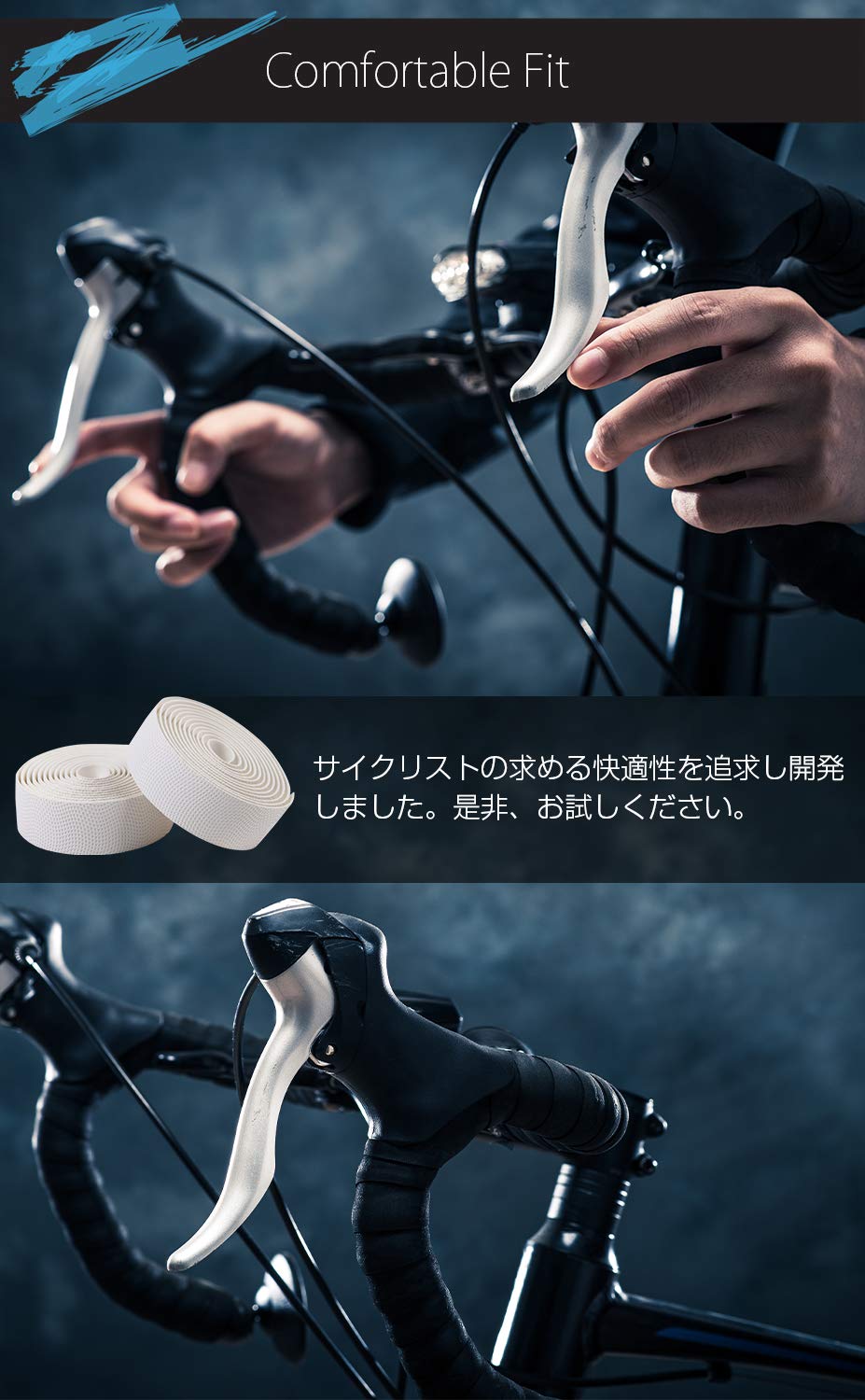 バーテープに最適なEVAを使用、軽量、耐久性に優れており過酷な環境下での使用でも劣化しづらい特徴もあります。適度なクッション性・弾力性があり、長時間走行時も快適な走行をサポートします。