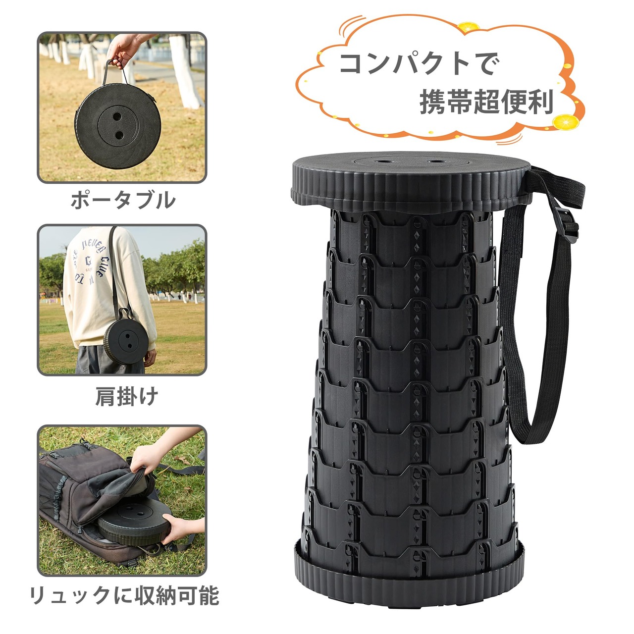 VECELO 折りたたみ椅子 携帯椅子 折畳椅子 伸縮式 超軽量 コンパクト 耐荷重150kg 直径25×高さ7~45cm 携帯便利 一秒開閉でき 高さ調節可能 キャンプ椅子 野外レジャー用 組み立て不要