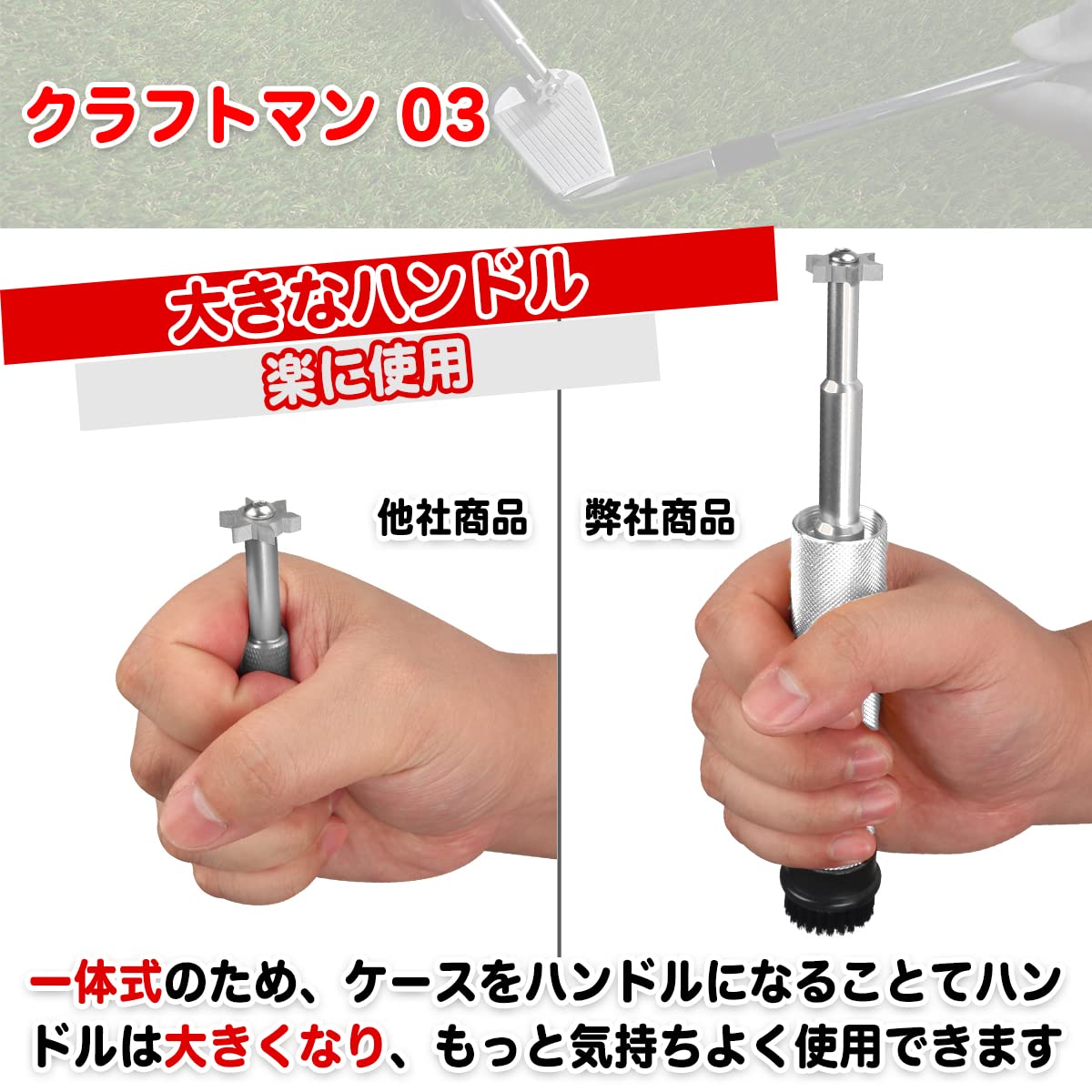 【ヤスリ】六つのヤスリが持ちています。それぞれの角度が違いため、アイアン、ウェッジを多角度で清潔できます。アイアンの溝に砂が詰まって固まりなどな問題を簡単に解決でき、スピンを維持します。