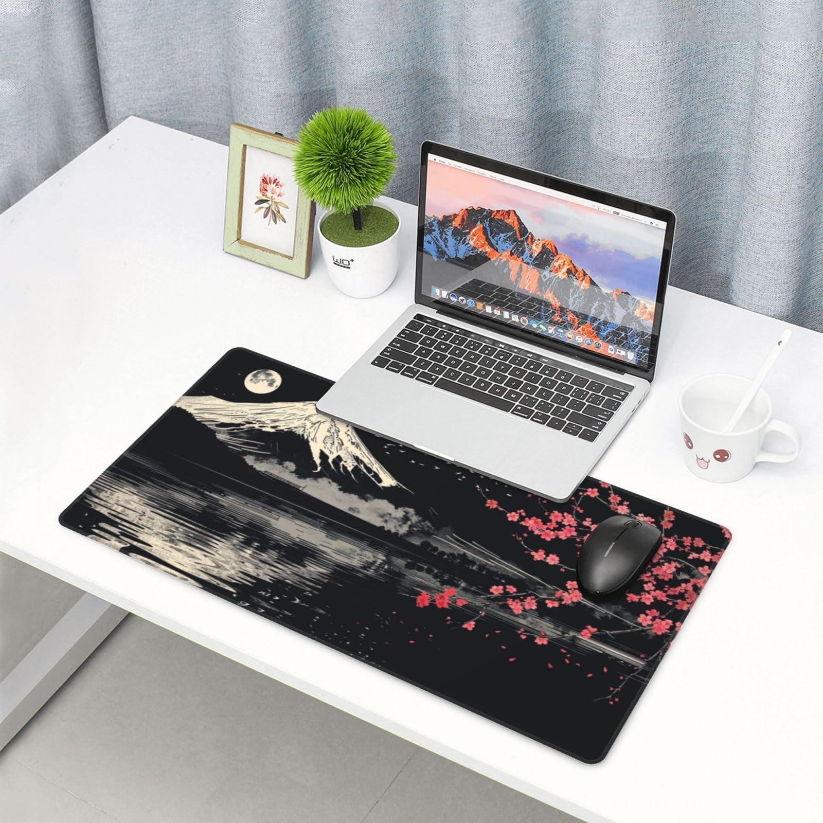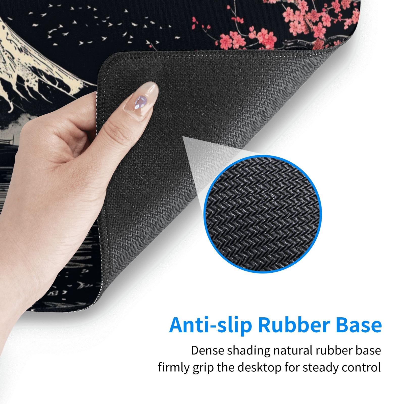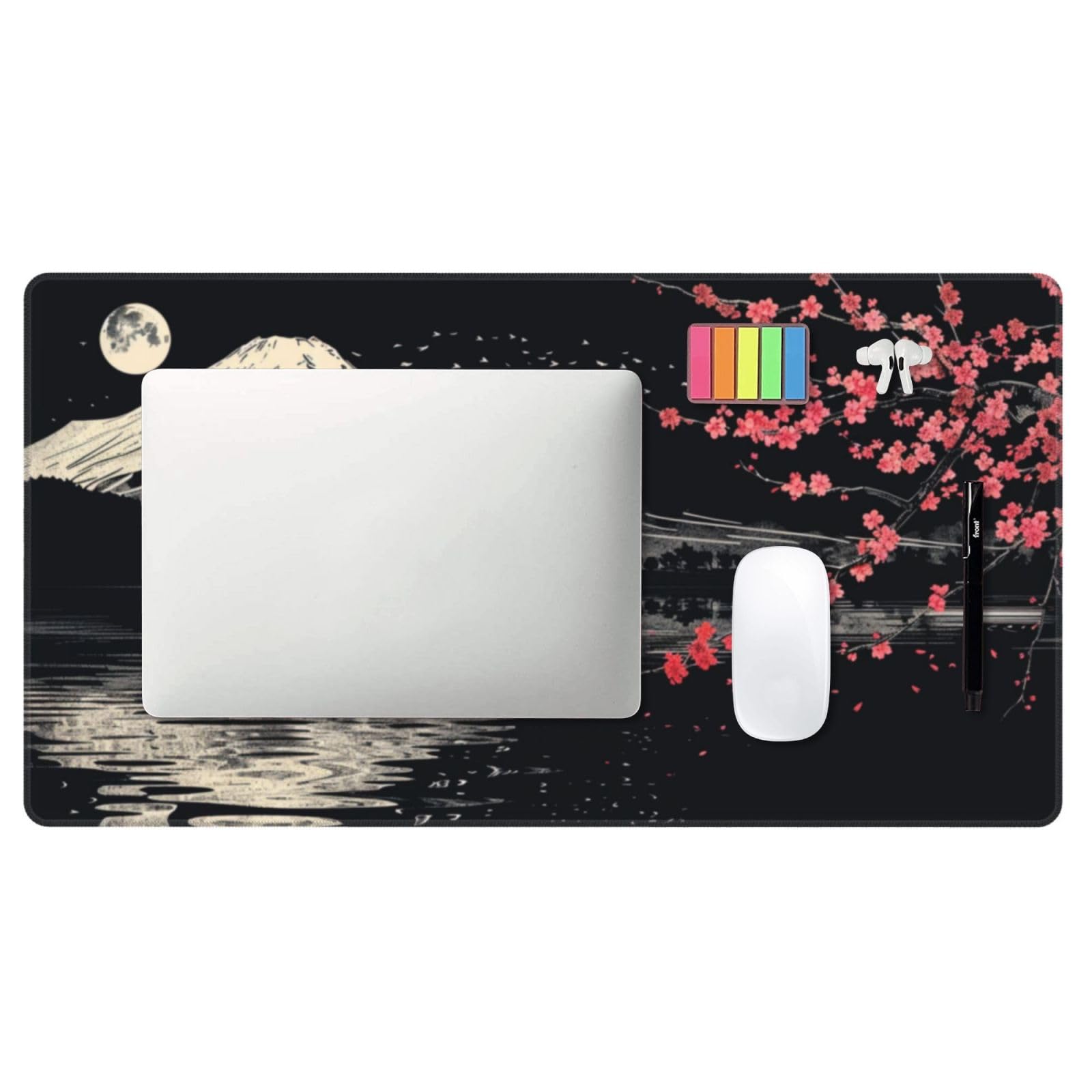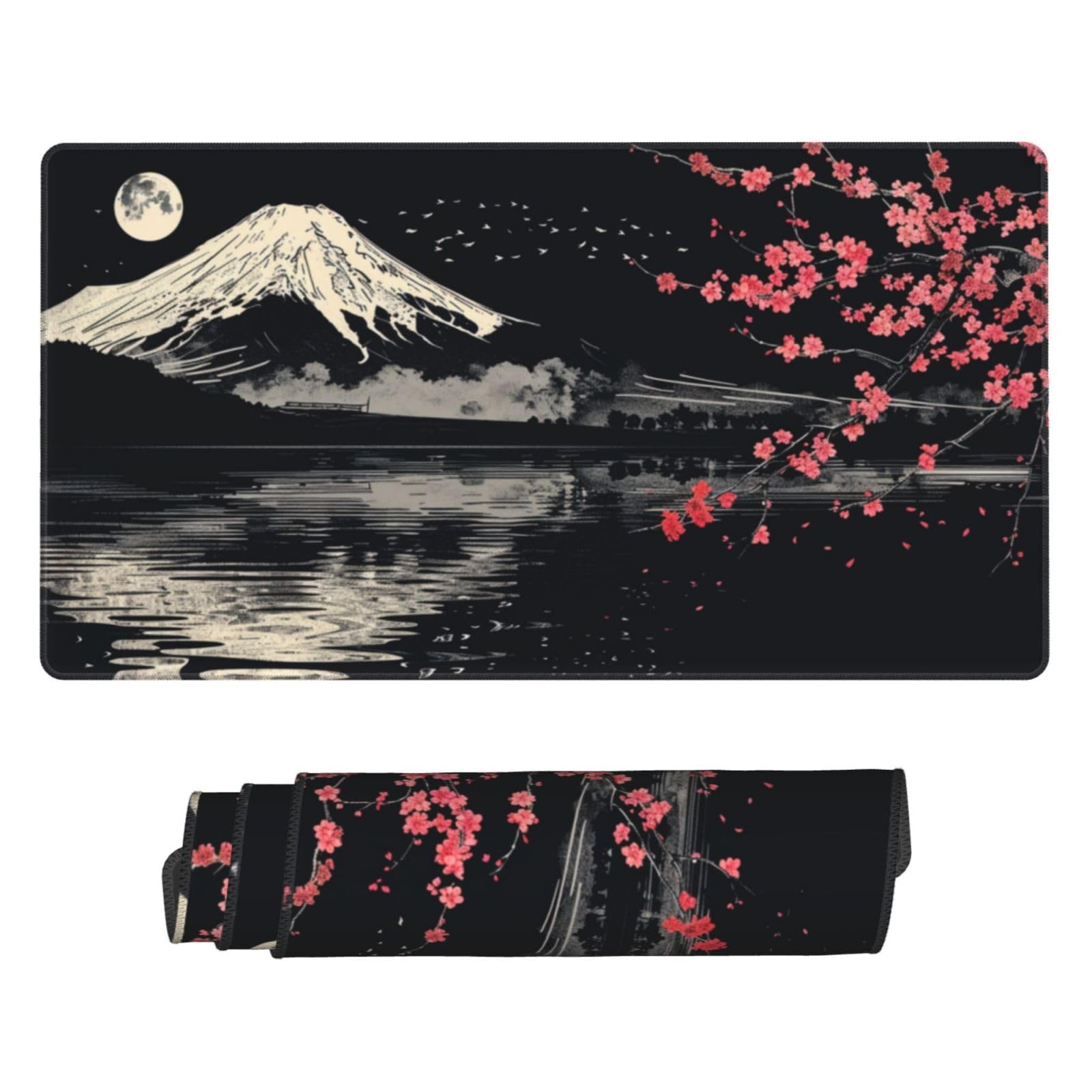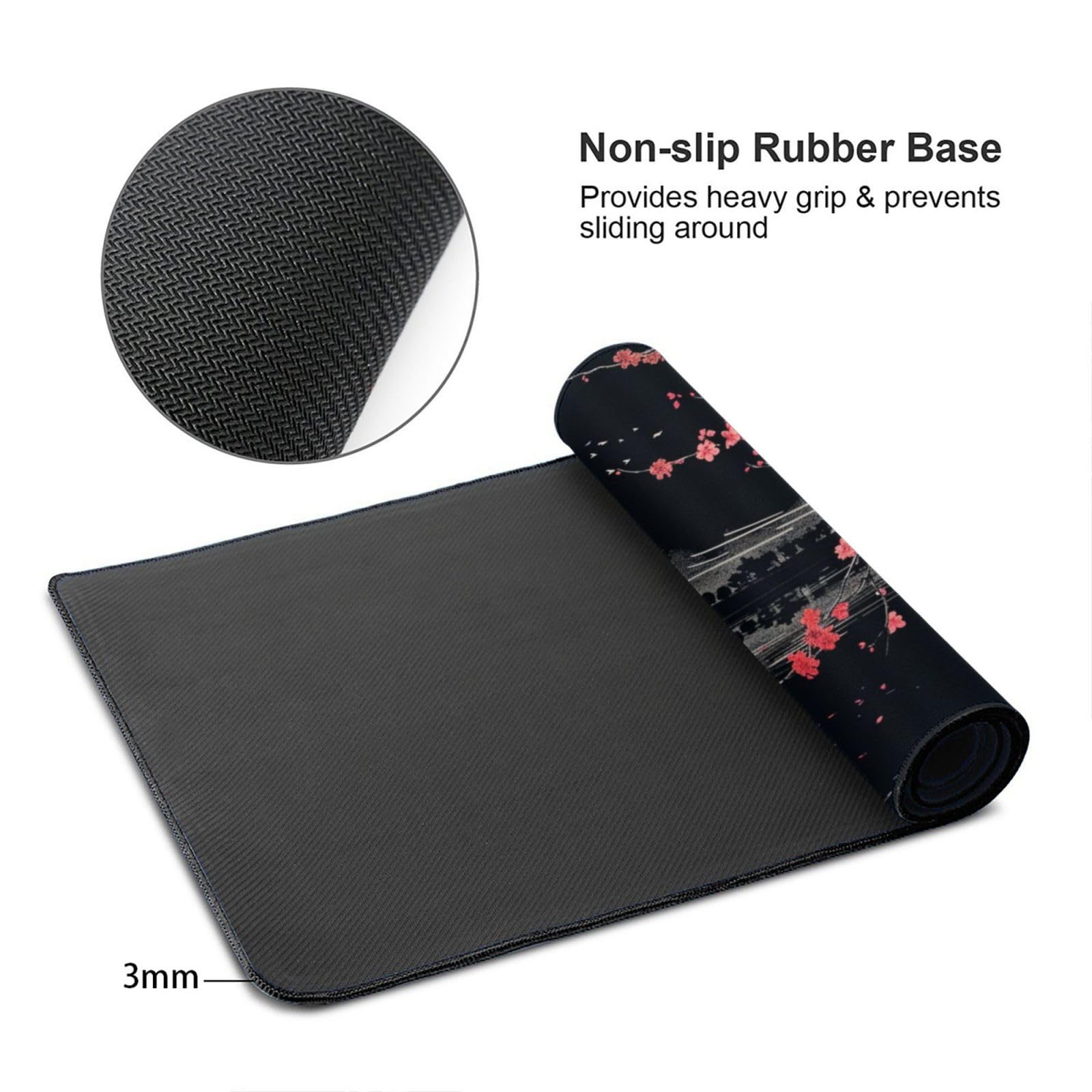 【新着商品】マウスパッド 大型 ゲーミング 和風 富士山 桜 ブラック マウスマット デスクマット 特大 おおきい キーボードパッド ゴム底 エレコム 光学式 マウス対応 滑り止め 耐久性 良い おしゃれ かわいい 防水 サイバーカフェ オフィス最適 適度な表面摩擦 40cm X 75cm