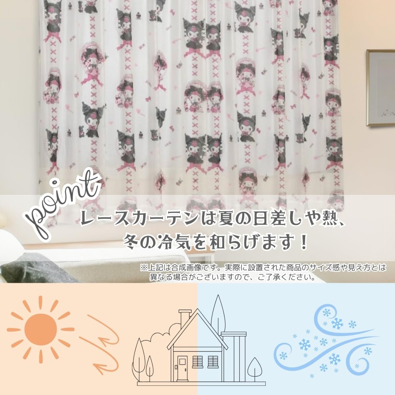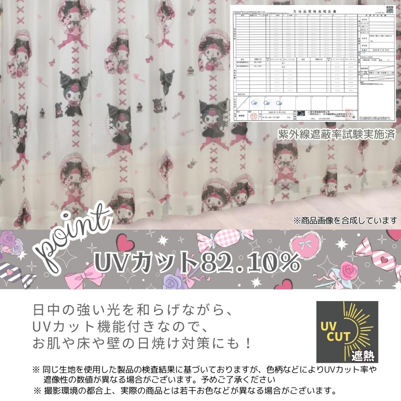 サンリオ(SANRIO) マイメロディ&クロミ UVカット 外から見えにくい レースカーテン 幅100×176cm丈 2枚セット サンリオ SANRIO マイメロ 丸洗い可 キャラクター SB-686-S