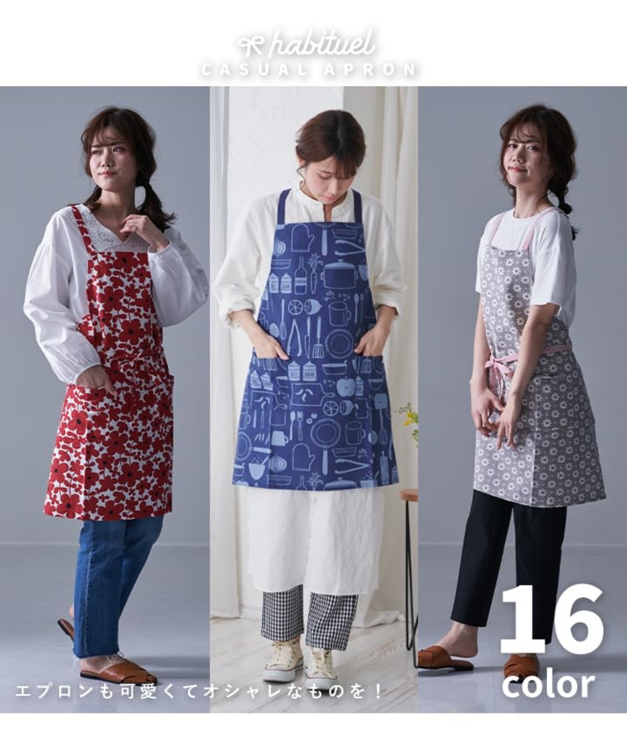 レップ(Rep) habituel(アビチュアル) エブリン エプロン ネイビー ボーダー柄 着丈73×幅84cm ポケット付き 綿100%使用 洗濯機対応 レディース 女性用 メンズ 男性用 肩掛け 前結び おしゃれ かわいい キッチン 料理用 カフェ 494219