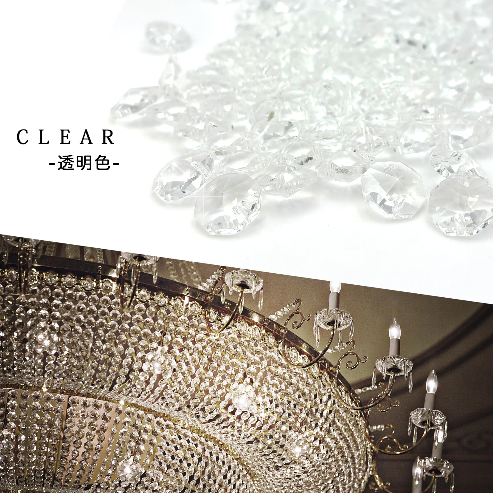 14mmの八角形クリスタルガラスを採用し、美しい光沢を放つビーズです。ゴールドリングとセットになった商品もあり、シャンデリアパーツや装飾用途に適しています。クリアカラーで、入数は100個、300個、500個、1000個のセットから選べるため、用途に応じた購入が可能です。