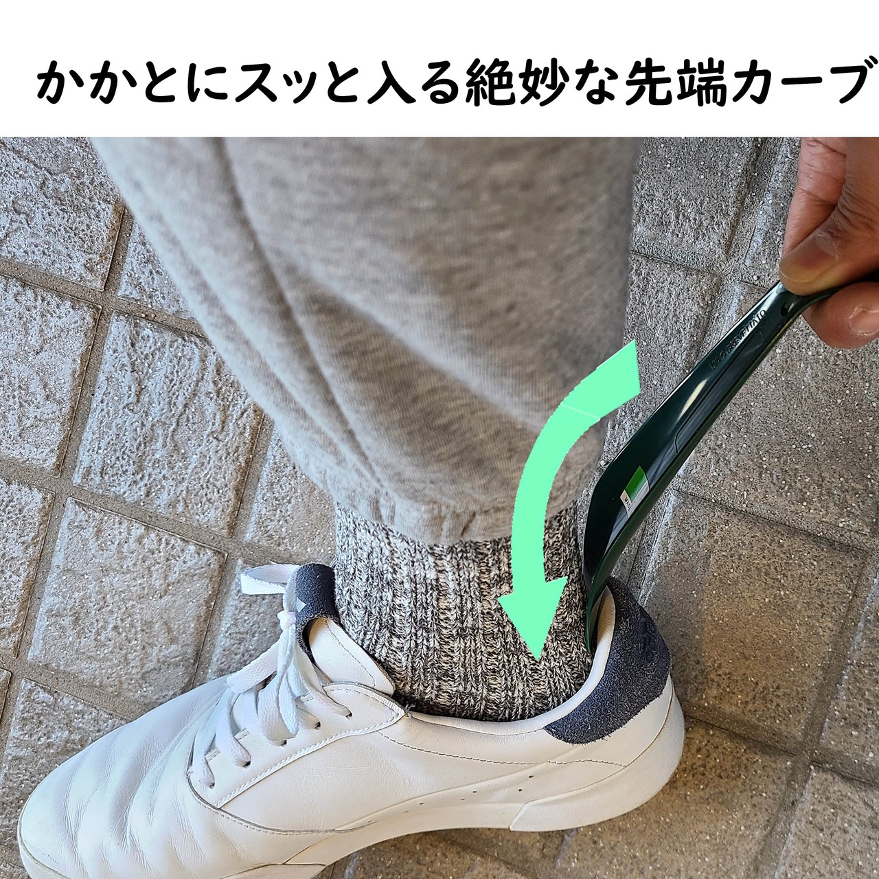 カカトにすっと入り靴を滑らかに履くことのできる、使いやすさを追求したカーブデザイン。