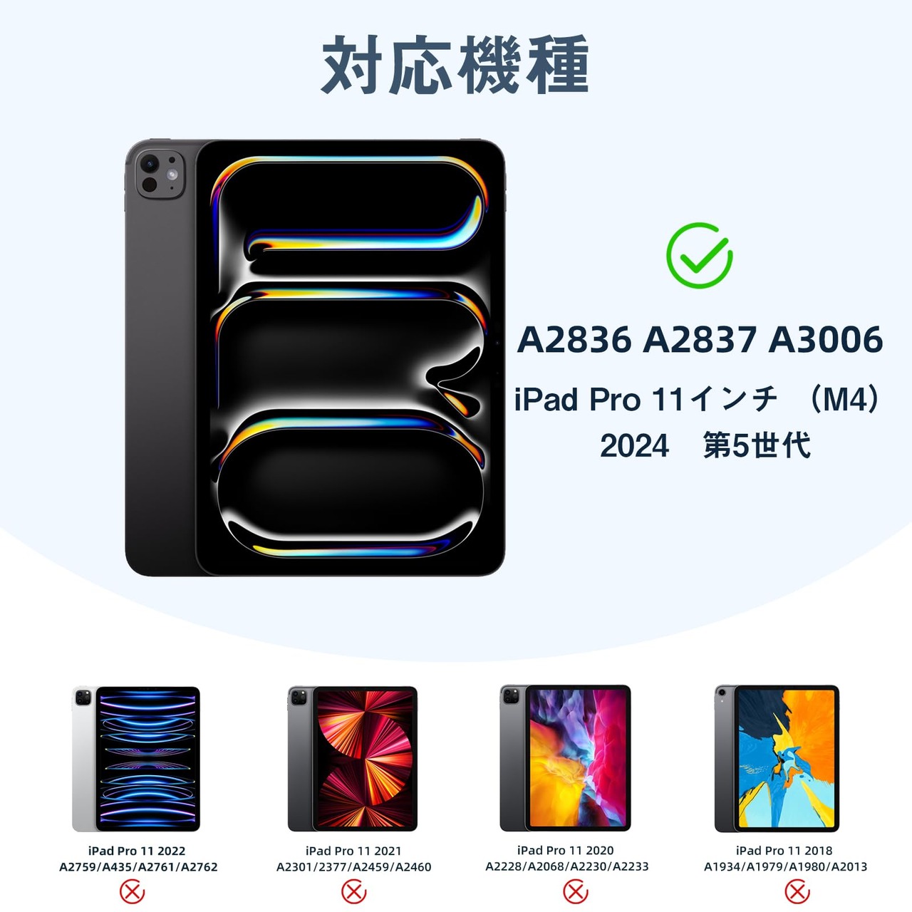 【対応機能】対応iPad Pro M4 (11インチ) 2024最新発売(モデル番号:A2836/A2837/A3006)専用ケース、 耐衝撃カバー。ご注意:対応iPadの他のモデルには対応していません、ご注文の際に、お手元機種の背面にあるモデル番号を確認をお願い致します。)