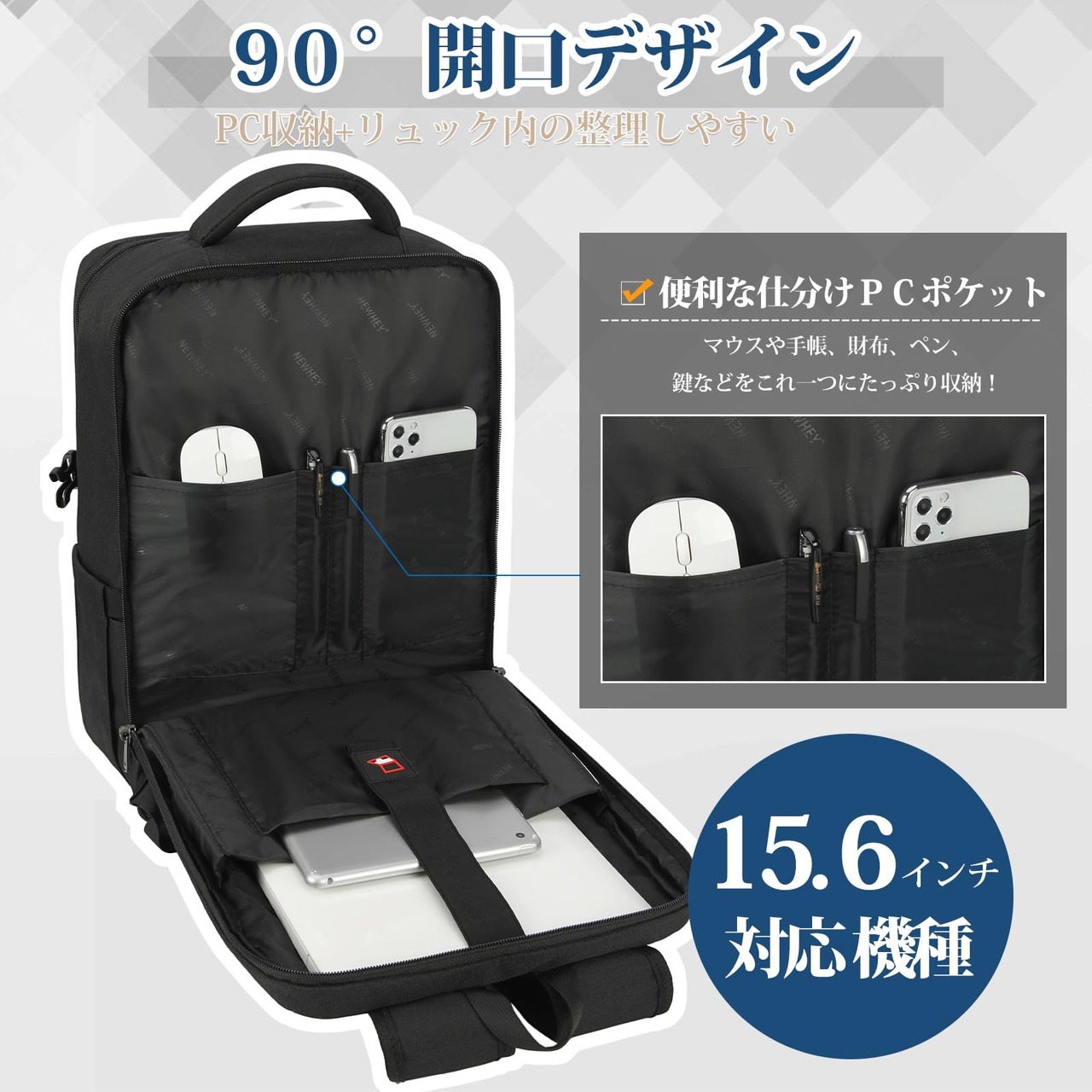 [NEWHEY] リュック メンズ ビジネスリュック YKKファスナー リュックサック バックパック 大容量 A4収納可 撥水加工 盗難防止 耐衝撃 多機能 PC 収納多ポケット 通勤 通学 出張 アウトドア旅行 男女兼用