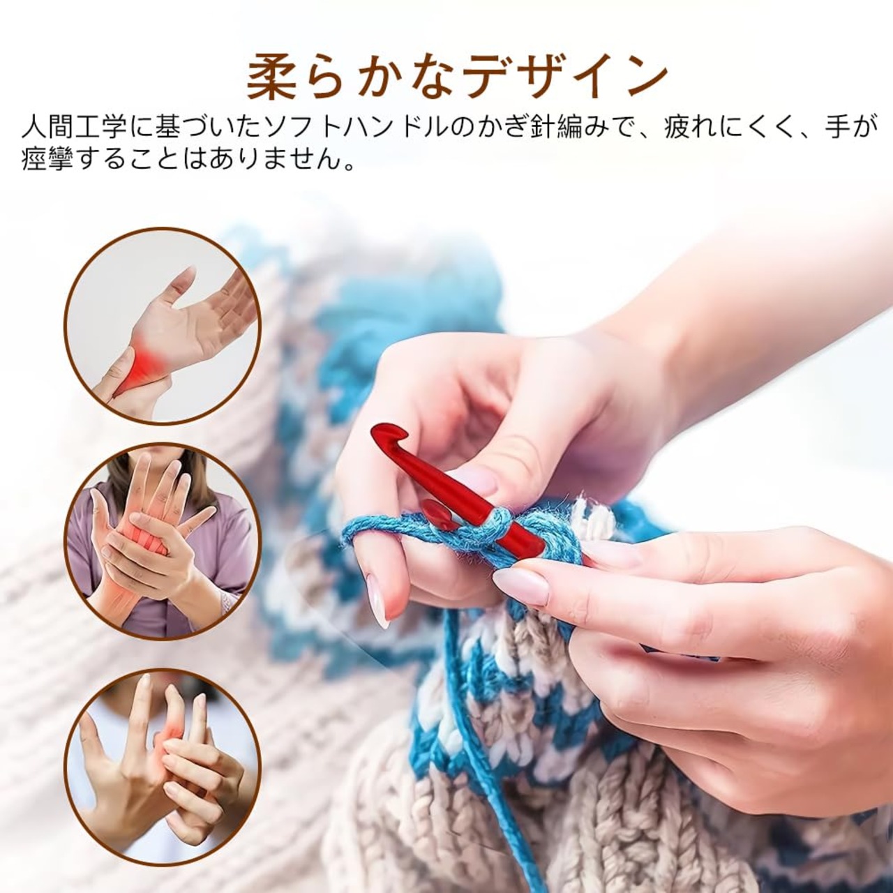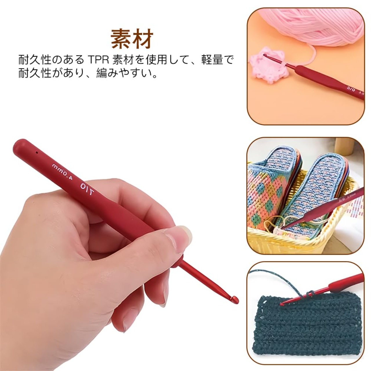 素材:高品質の鋼とゴムハンドルで作られ、軽量で耐久性があり、編みやすい。