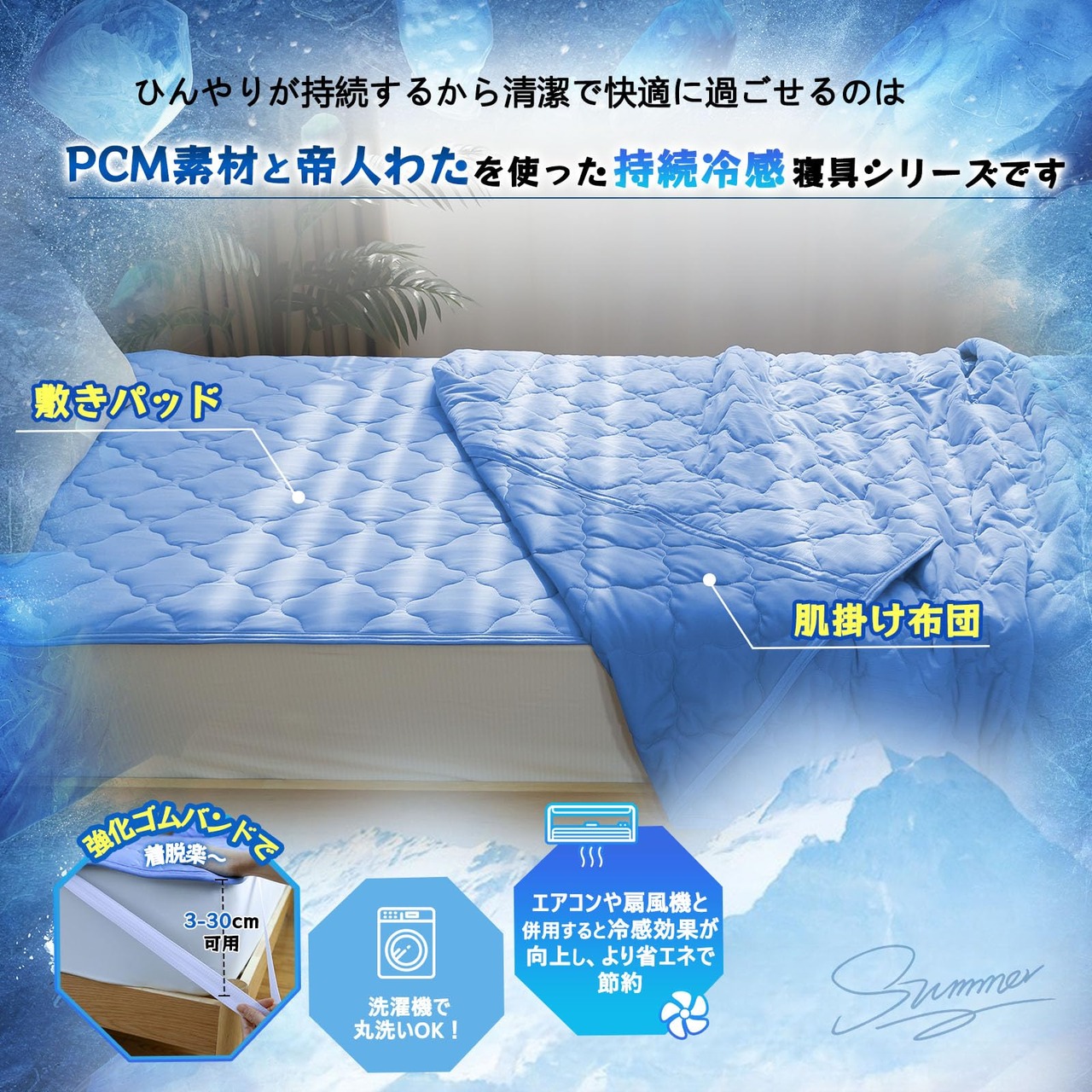 【軽量・通気性抜群、手入れも簡単】この冷感夏用肌掛け布団は軽くて柔らかく、通気性にも優れています。抗菌・消臭・吸湿速乾・持続冷感など多機能を組み合わせているため、暑い夏でも蒸れにくく、春・夏・秋の3シーズンで安心して使用できます。さらに、夏用掛け布団は洗濯機対応で、手入れが簡単。忙しい毎日でも清潔な状態を保つことができます。