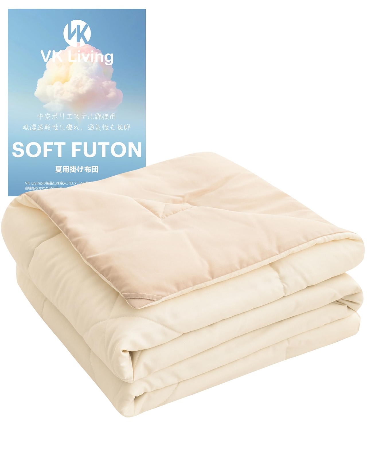 【2022最新】VK Living 夏用掛け布団 ダブル 【調温なかわた・TEIJIN高機能中綿】 掛け布団 夏用 五層構造 2025年新技術 24時間持続制菌消臭 調温布団 洗える SEK衛生認証 抗菌防臭 夏布団 180×200cm ベージュ