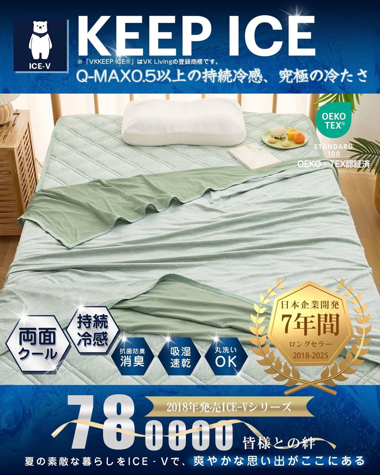 【進化を続ける「ICE-Vシリーズ」7周年記念!】人気のICE-Vシリーズ、今年で7周年!5年連続敷きパッド第1位、掛け布団第1位、タオルケット第1位、3冠達成!合計78萬枚突破!大変多くのご注文をいただき、本当にありがとうございます。OEKOTEX認証済、ISO9001認定工場、Transparencyによる確認済、最高の眠りを提供します!「ICE-Vシリーズ」は、これからも進化し続けます。