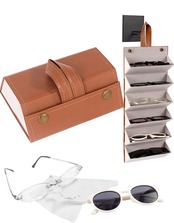 【商品仕様】■入れられるメガネの大きさ(3本,6本):縦5cm,横16cm(5本):縦6cm,横16cm■丸めた時の大きさ(3本):縦6cm,横12.5cm(5本):縦12.5cm,横13cm(6本):縦11cm,横13cm■開いた時の大きさ(3本):縦35cm,横16.5cm(5本):縦47cm,横16.5cm(6本):縦40cm,横16.5cm■素材:外側 PUレザー、内側 スエード■重量(3本):159g(5本):255g(6本):242g