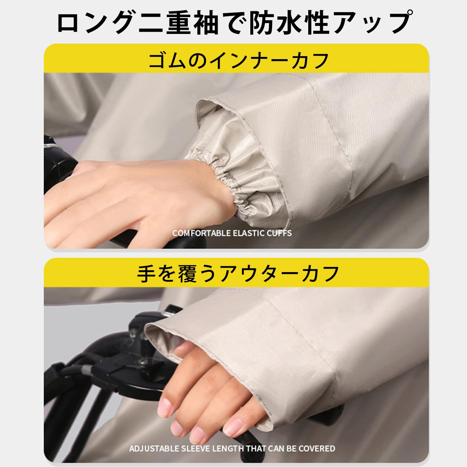 【様々なレインシーンに対応】汚れの付きにくい撥水加工が施されているため、 通勤&通学&自転車&バイクなどの日常使いはもちろん、 キャンプや釣り、ハイキングなどのアウトドアまで幅広くご使用いただけます