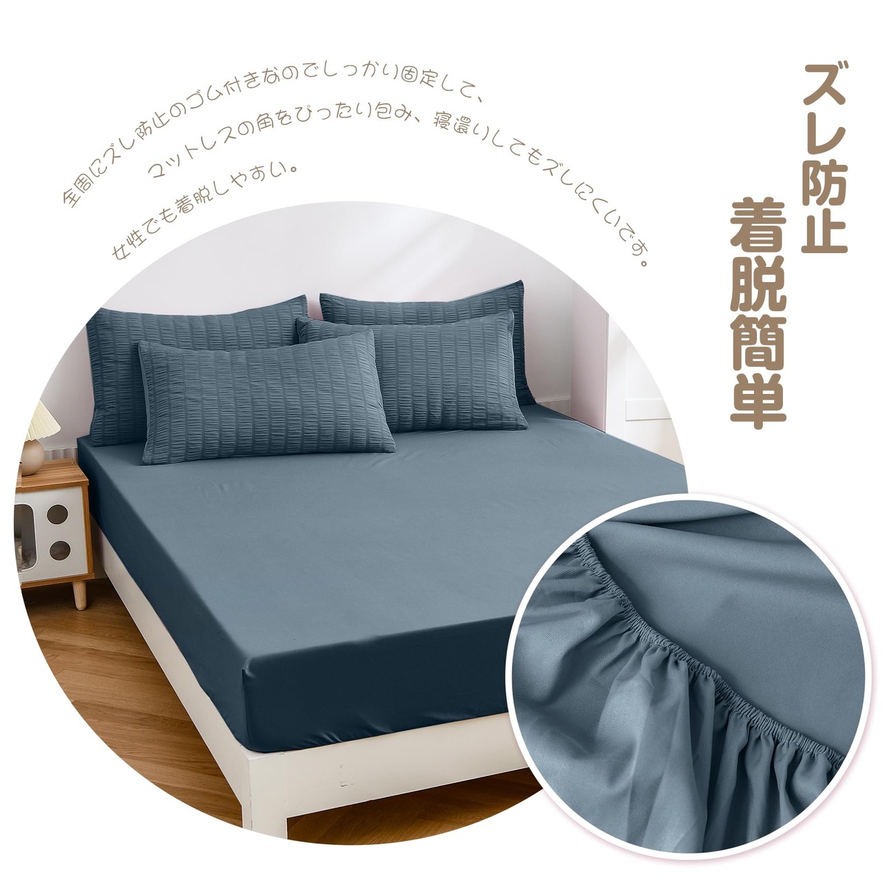 布団カバー 【シアサッカー生地 ホスール(HOSUR) 】 寝具カバーセット ピーチスキン加工 掛け布団カバー ボックスシーツ 枕カバー 優しい肌触り柔らかい 速乾タイプ 洗い替え(コーンフラワーブルーセミダブル・4点セット)