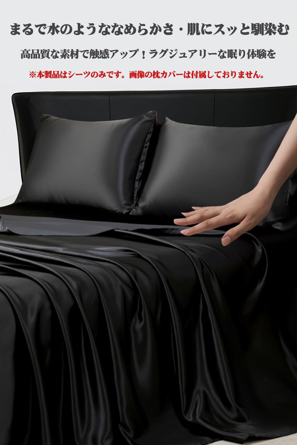 シルク ベッドシーツ マットレスカバー 360°全周カバー 簡単装着 吸水速乾 型崩れしにくく、オールシーズン対応 シルクのような肌触り 洗える ベッドカバー(シングル・100×200 ブラック)