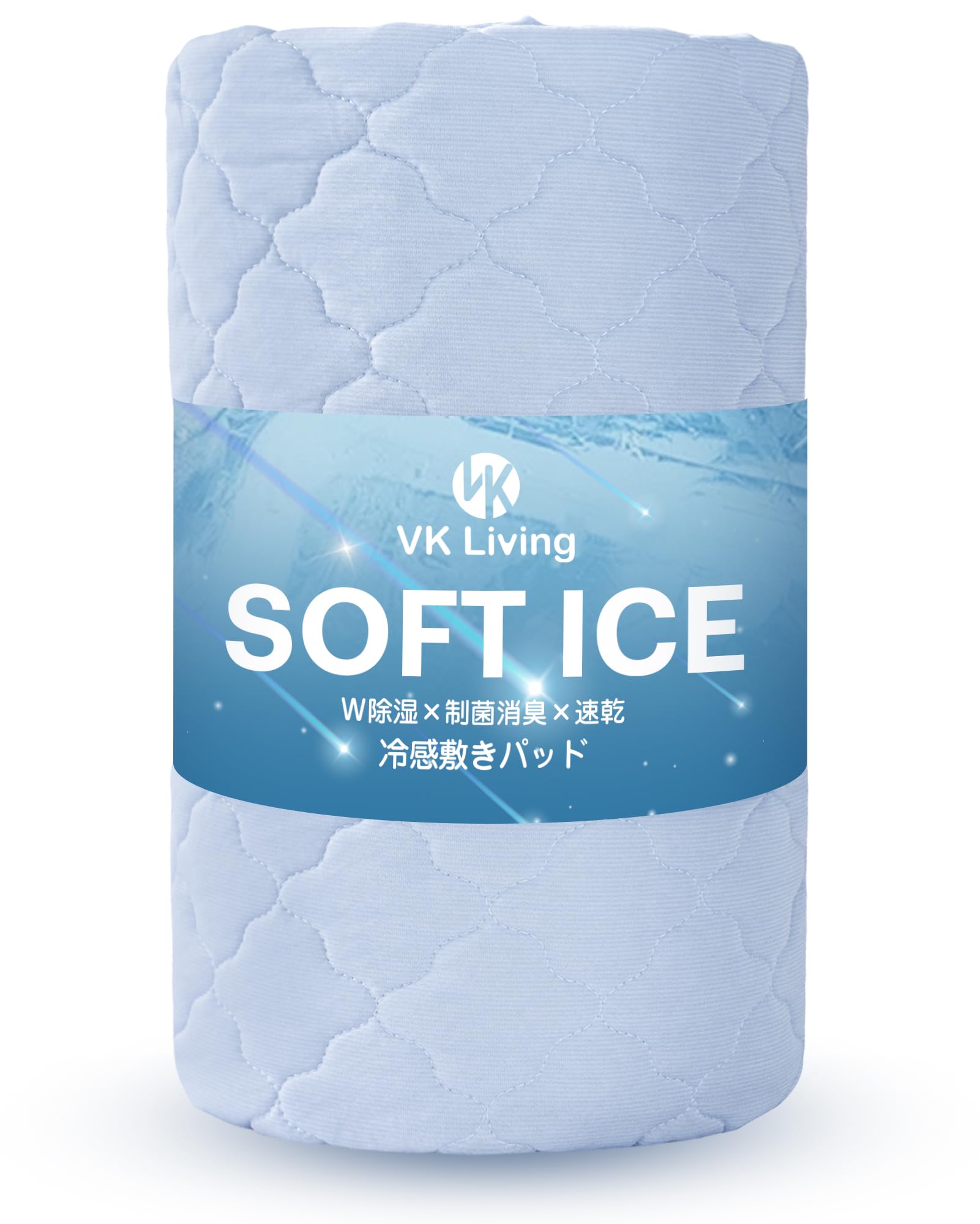 VK Living 敷きパッド ダブル 冷感 【SOFT ICE】 しきぱっと 夏用 シーツ ひんやり 【TEIJIN マイティトップ中綿使用】 ベッドパッド 24時間持続制菌消臭 敷パッド オールシーズン 二重除湿速乾 洗える 防ダニ 抗菌防臭VKJ012 140x205cm ブルー