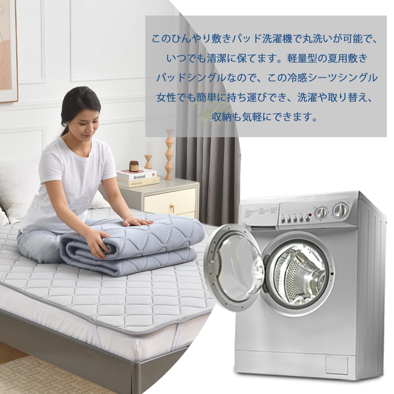 【丸洗いOK】このひんやり敷きパッド洗濯機で丸洗いが可能で、いつでも清潔に保てます。軽量型の夏用敷きパッドシングルなので、この冷感シーツシングル女性でも簡単に持ち運びでき、洗濯や取り替え、収納も気軽にできます