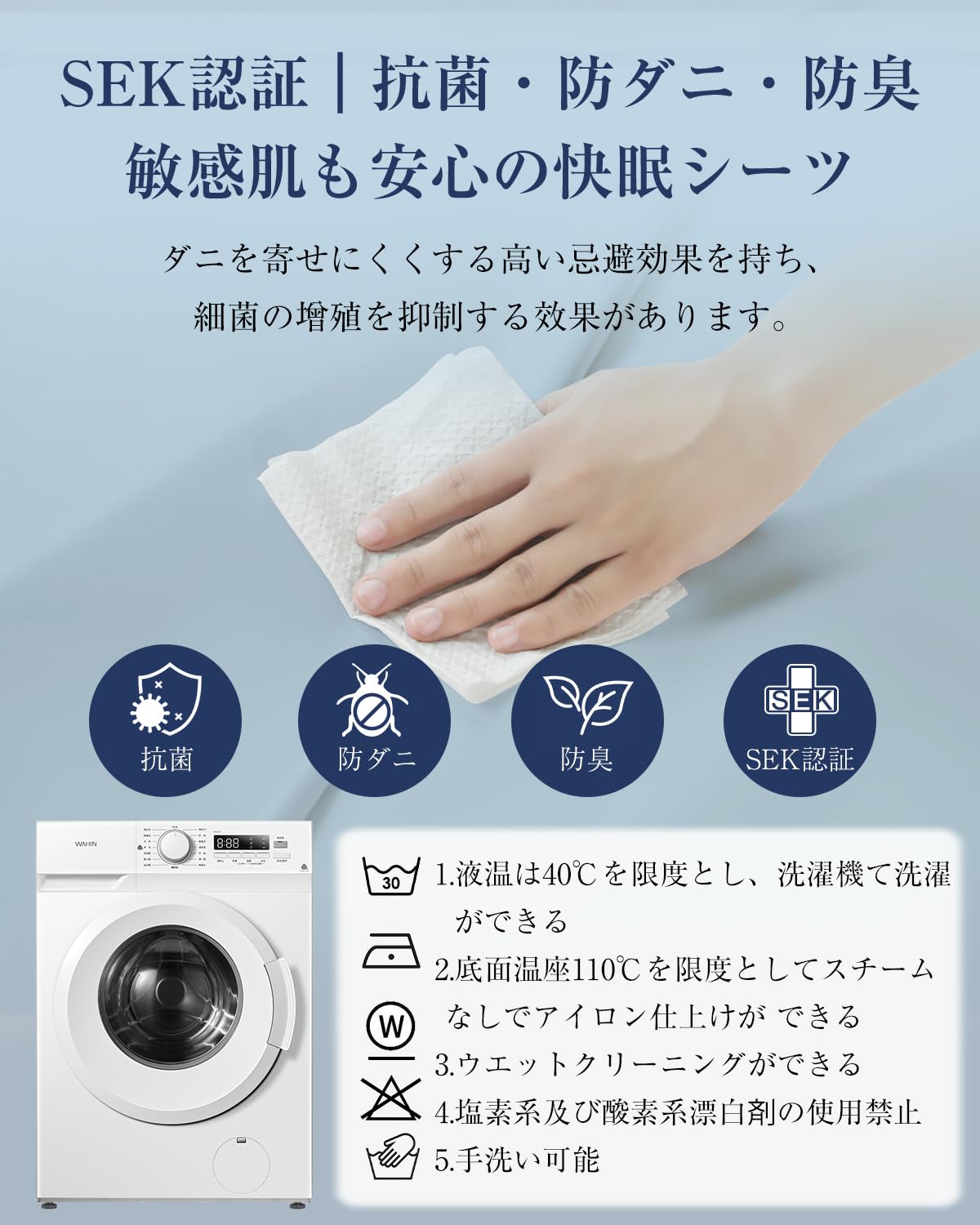 【吸水速乾·いつでも清潔に】洗濯後の乾燥が速いので、朝に洗って夜に再使用することができます。ゴムは全周360°を採用しているため、寝返り時のシーツのズレを防ぎます。