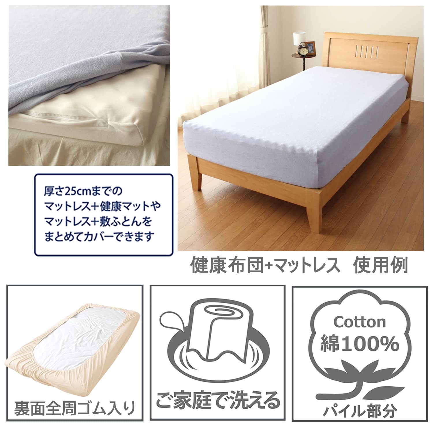 厚み25cmまで対応するのでマットレスはもちろん、マチがある厚手の敷ふとんや 「敷ふとん+マットレス」の組み合わせで使用の時も一つにまとめてカバーできます。シングルサイズのマットレス・敷布団兼用シーツの為 ゲスト用や洗い替え用の1枚として持っていても便利です。