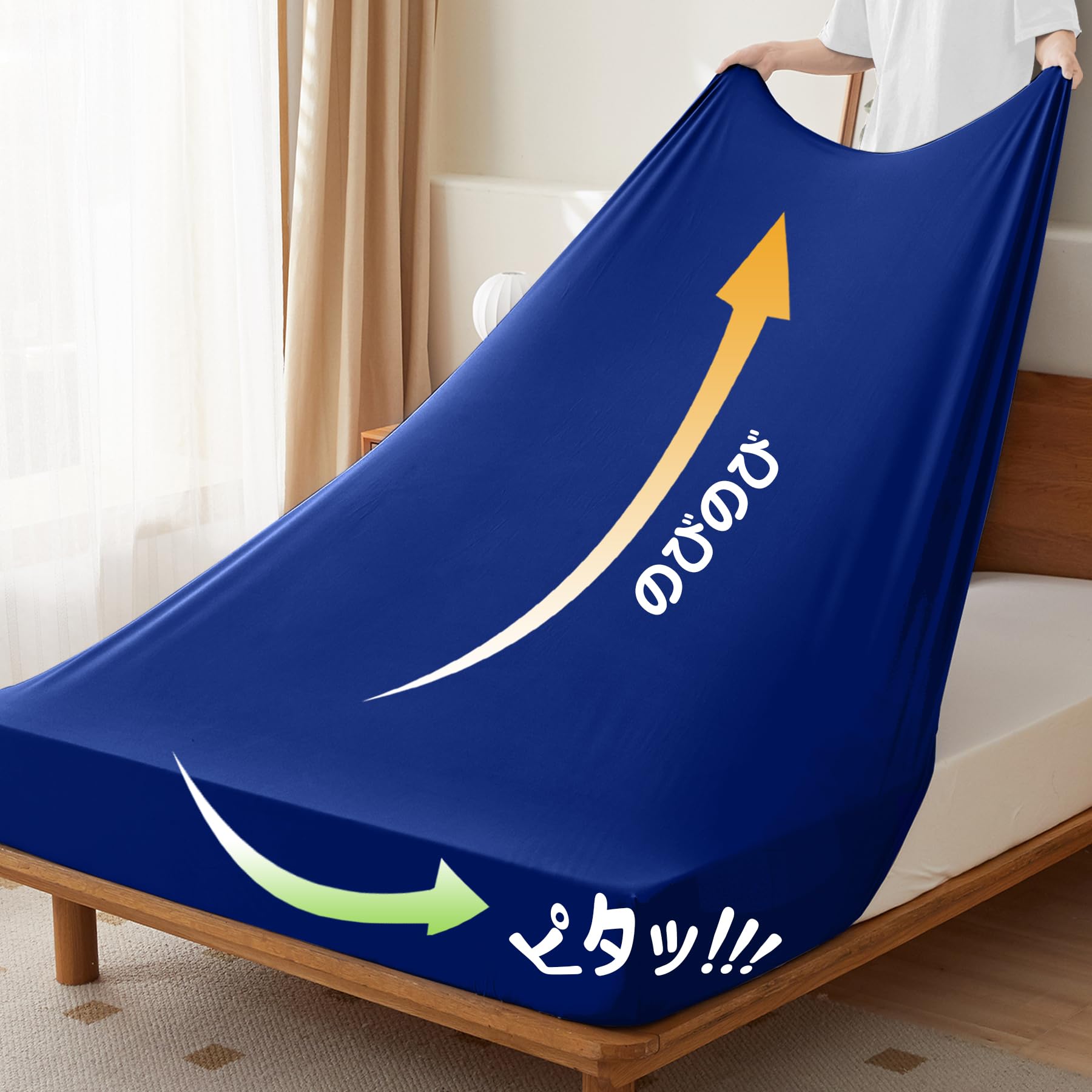 【伸縮性抜群、付け外し簡単】「3Dストレッチ」特性があり、タテにもヨコにも伸びるので、様々なサイズのマットに適用できます。 シワにならずにぴったりフィット、アイロンいらずキレイなベッドに変身するボックスシーツです。 手間なく簡単に装着できます。