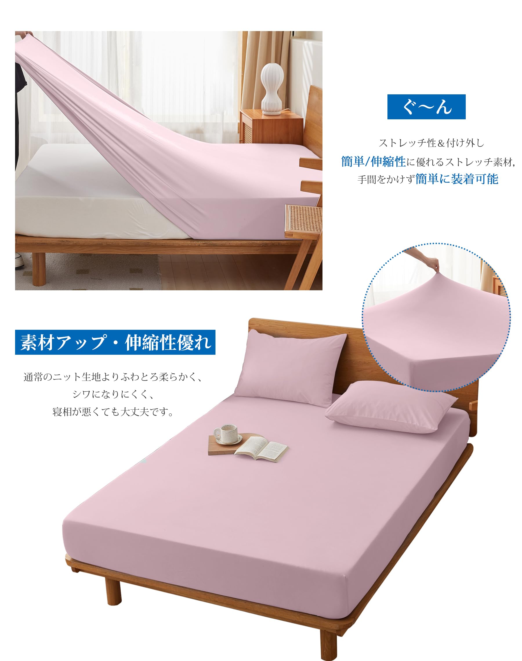 ボックスシーツ ベッドシーツ AYO 吸水速乾 毛玉なし ベッドカバー マットレス・敷ふとん兼用 のびのびぴったり 抗菌防臭 通気性 夏 冬オールシーズンしわにならない 着脱簡単(シングル~セミダブル用・100~120cm×180~210cm ピンク)