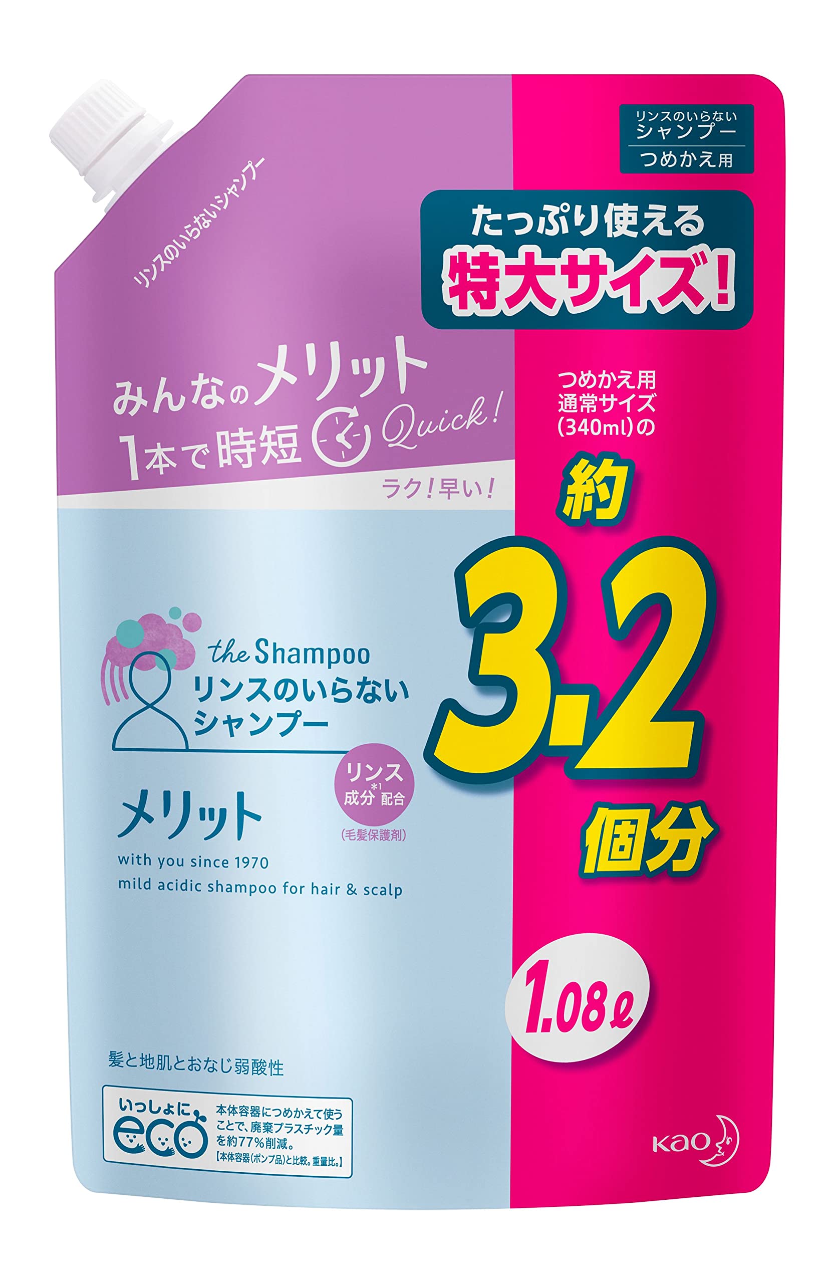 【大容量】 Merit メリット リンスのいらないシャンプー つめかえ用 1080ml [医薬部外品]