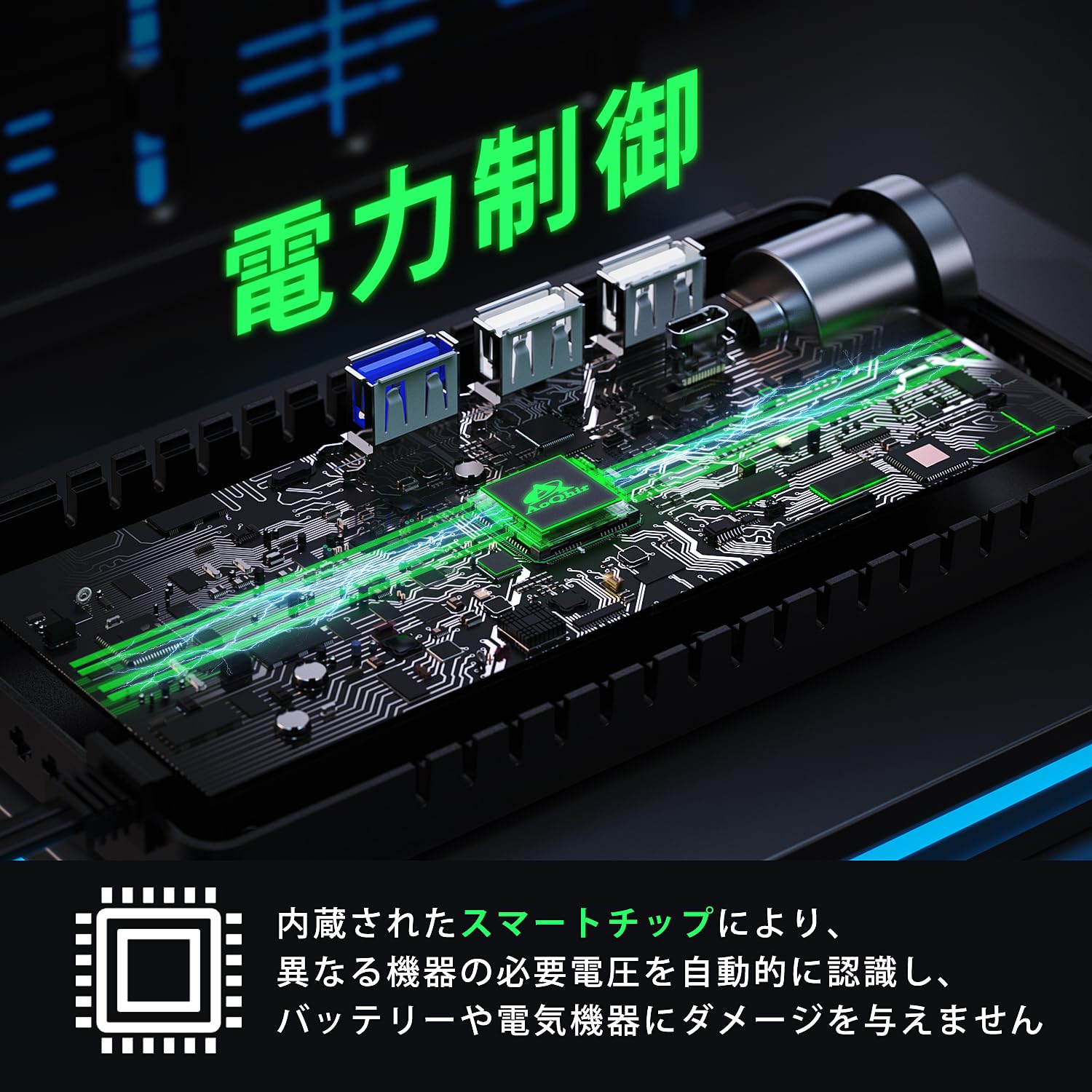 スマートチップ認識:シガーソケットにはスマートチップが内蔵されており、異なるデバイスが必要とする電圧を自動的に認識し、安全な充電を行います。このスマートな認識機能により、過電圧や過電流による機器の損傷を防ぎ、ユーザーはさまざまな電子機器を安心して使用できます