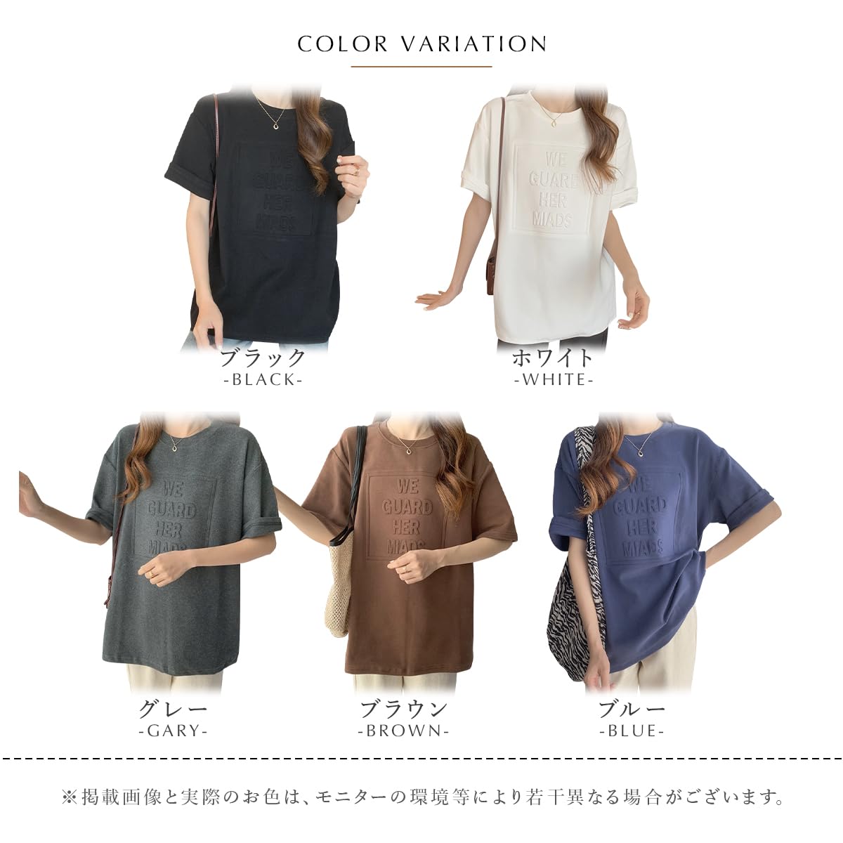 [WEARBIE] [ウェアビー] 立体ロゴ オーバーサイズ Tシャツ エンボス加工 半袖 シンプル おしゃれ レディース M~XL