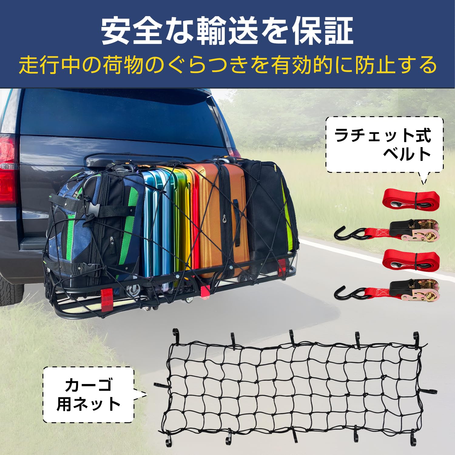 Donext ヒッチキャリアカーゴ ヒッチキャリア 反射板&ロックピン&ガタストップ&カーゴネット&ラチェット式ベルト付き スチール製 車用 2インチ/50.8mmに適合 耐荷重226.8kg