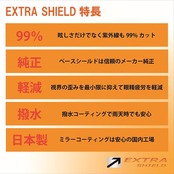 ●EXTRA SHIELDは、紫外線を99%カットしてくれる特殊なミラーコートが何よりの特徴。