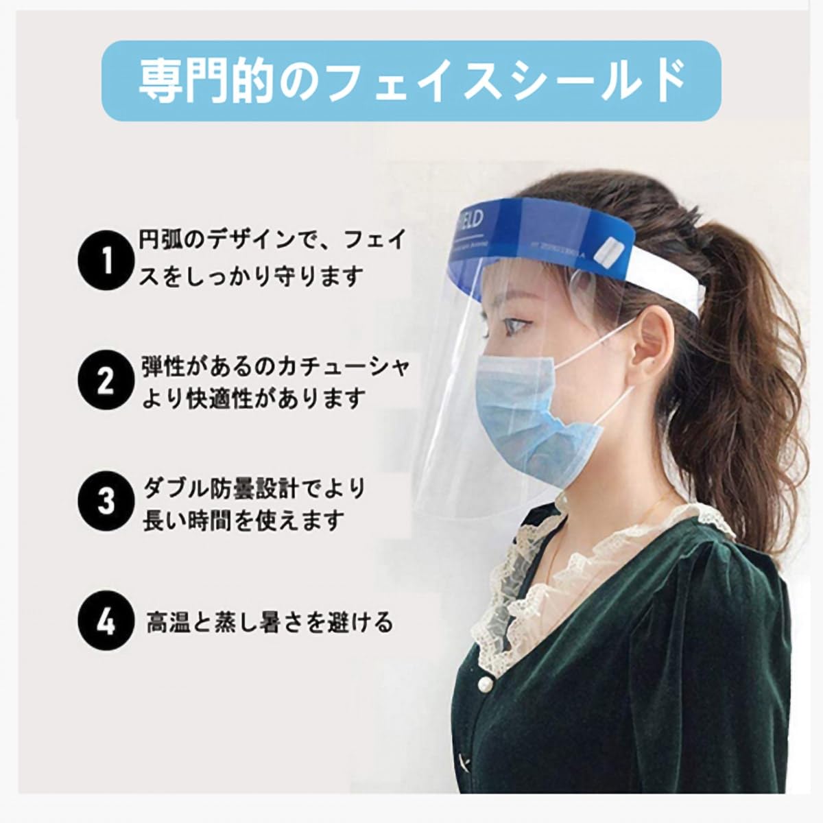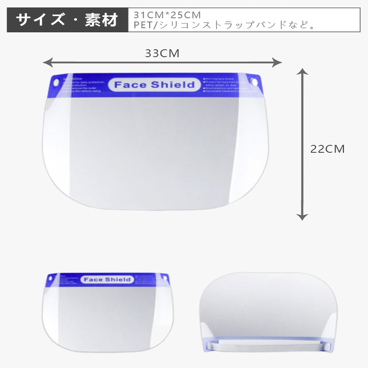 【飛沫防止、ウイルス、花粉、ホコリ対策】軽量のフェイスガード、フェイスシールドです。やわらかいスポンジとゴムバンドで装着するタイプです。保護シ一ルドは完全に顔を覆うことができるから、空気中の飛沫、ホコリ、花粉や発煙が鼻·口·目から侵入するリスクを軽減します。曇り防止で、マスクしながら作業してみましたが息では曇りませんでした。