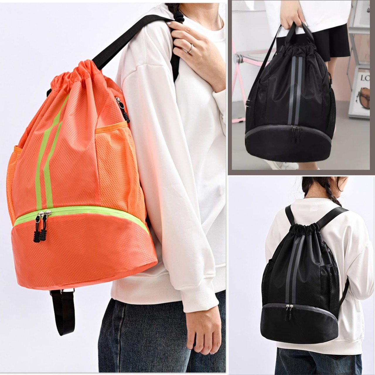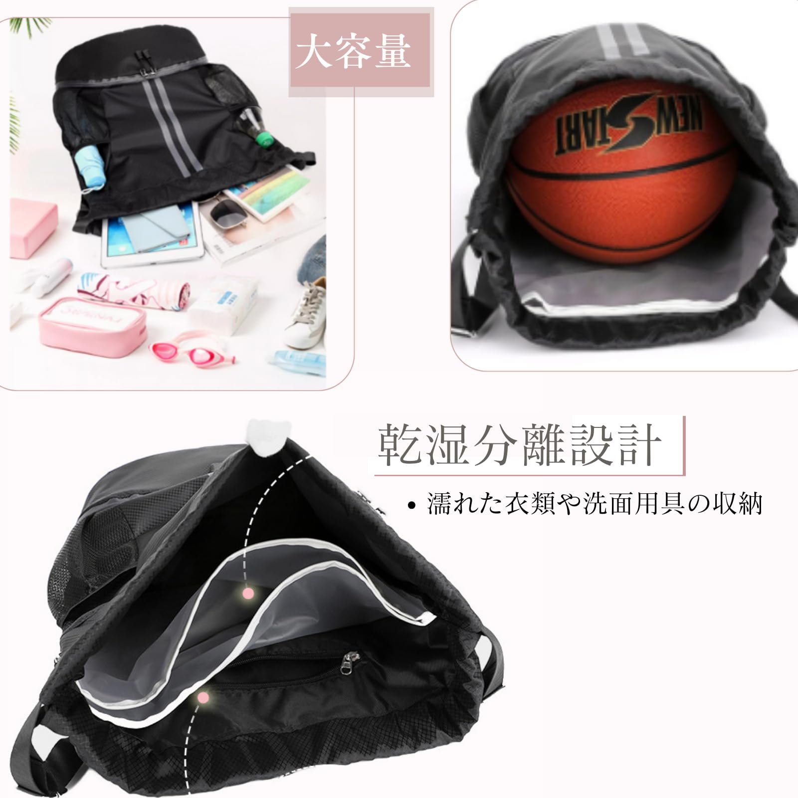 [Quikaboo] ナップサック ジムサック 大容量 防水 軽量 ナップザック リュック トレーニングバッグ カジュアル スポーツ 折り畳み 乾湿分離 水泳 運動 旅行