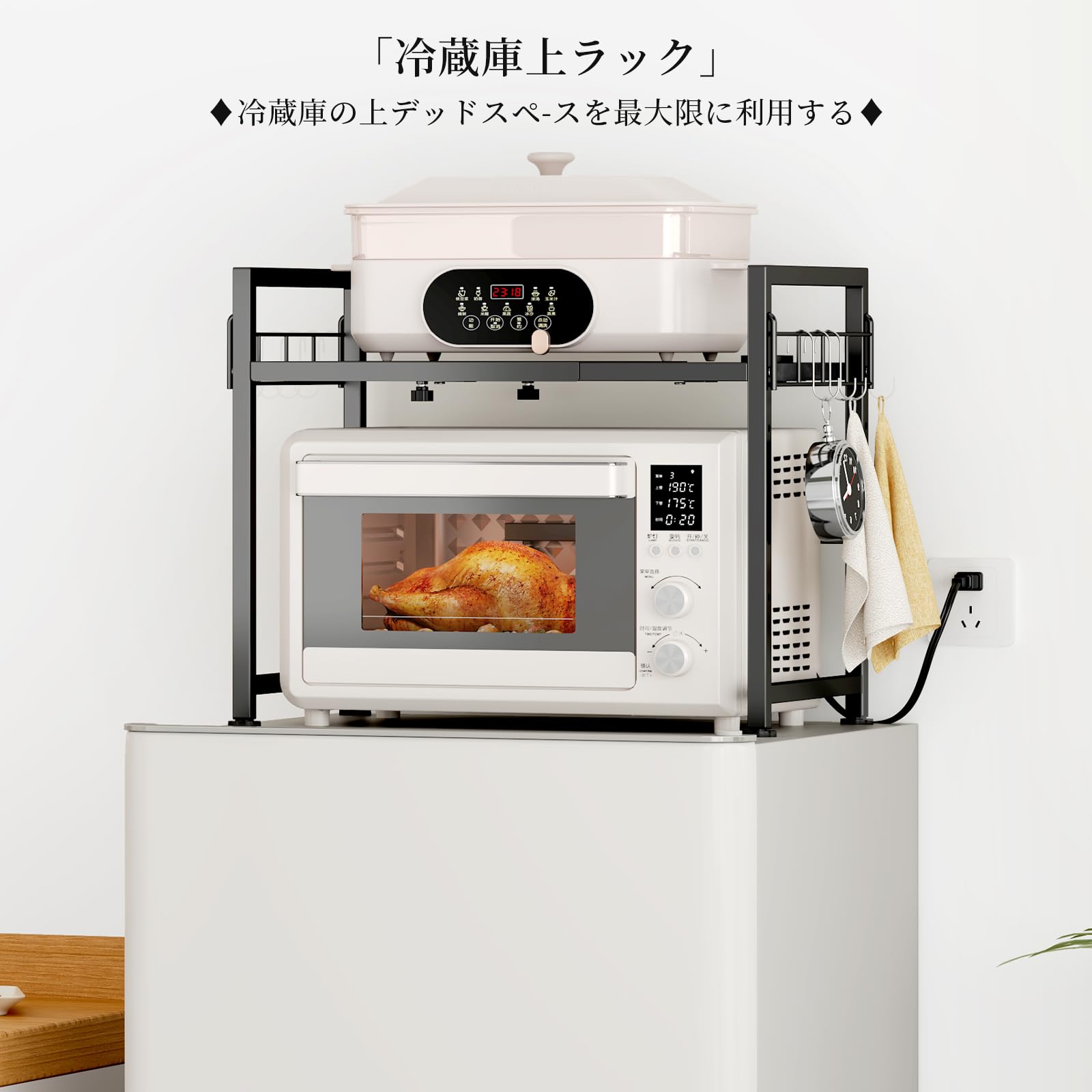 【新春セール】LunarLight レンジ上ラック コンセント付き 伸縮式 幅39~65奥行32高さ42cm 棚板高さ6段調節可能 耐荷重60kg トースターラック レンジ台上棚 レンジ置き台 キッチン収納 Sフック8個付き キッチン棚 台所整理ラック (ブラック 幅39~67) | asaRulu0511