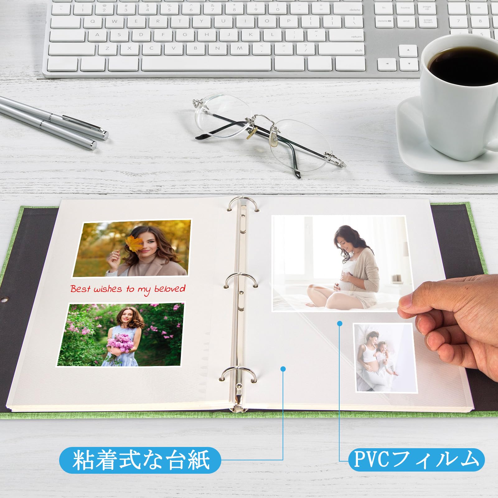 【特価セール】AIOR アルバム フォトアルバム 貼るタイプ フリー台紙 麻縄飾り バインダー式 写真アルバム 30枚/60ページ 手作りフォトブック 粘着式 写真収納 ファイル フィルム 家庭用 子供用 記念日 結婚式 誕生日 プレゼント グリーン