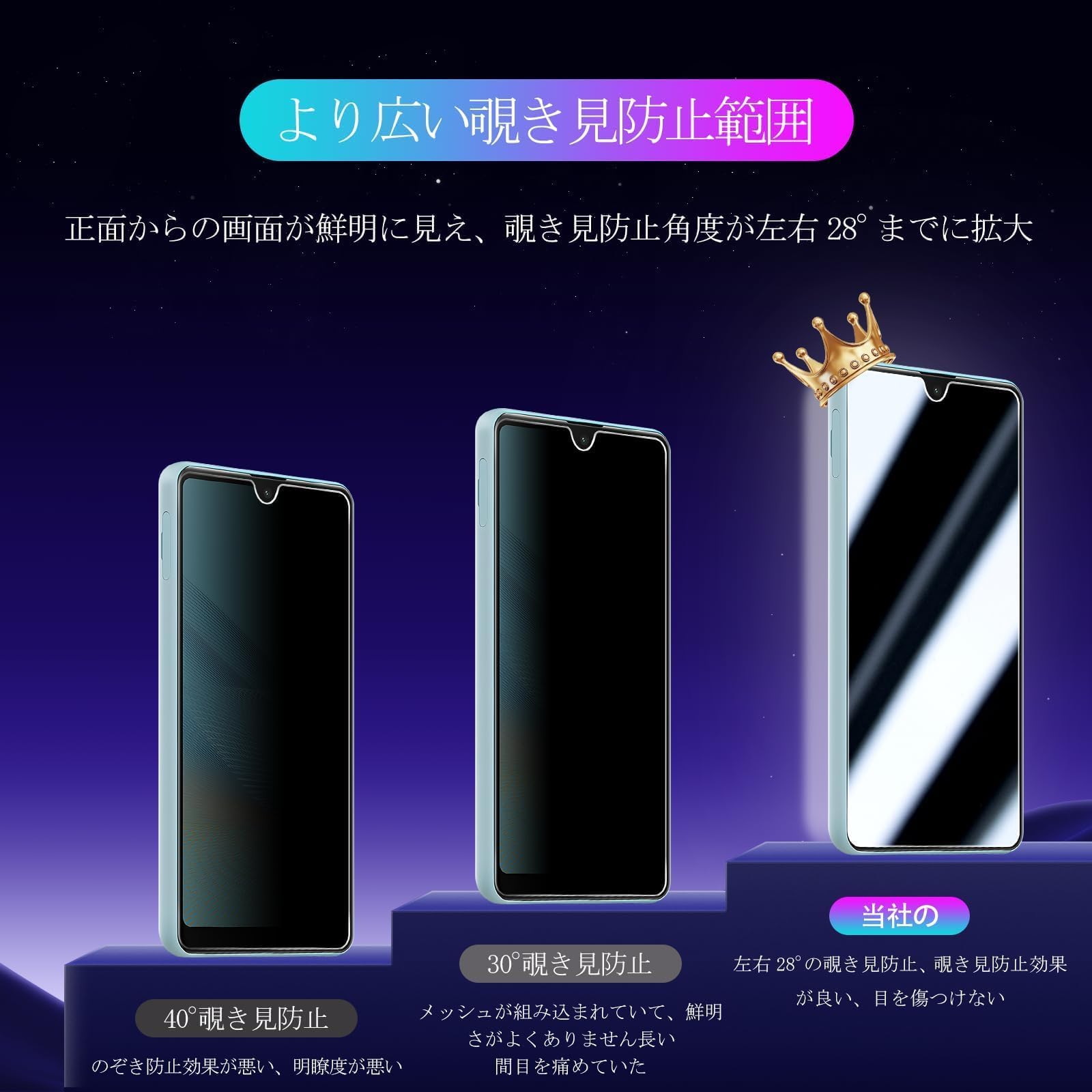 【覗き見防止】画面を左右から覗かれることを防ぐ180° 左右 2方向ブラインド仕様のプライバシー保護フィルムです。スマホの正面にいるユーザーだけ画面内容をクリアに見えます。周りの視線を気にすることなくLINEやメールのやりとりを行えます、個人情報も完璧守られます。(ご注意:覗き見防止加工の特性上、画面輝度が多少下がることがありますので、気になる方はデバイスの画面輝度を上げることを勧めます。)