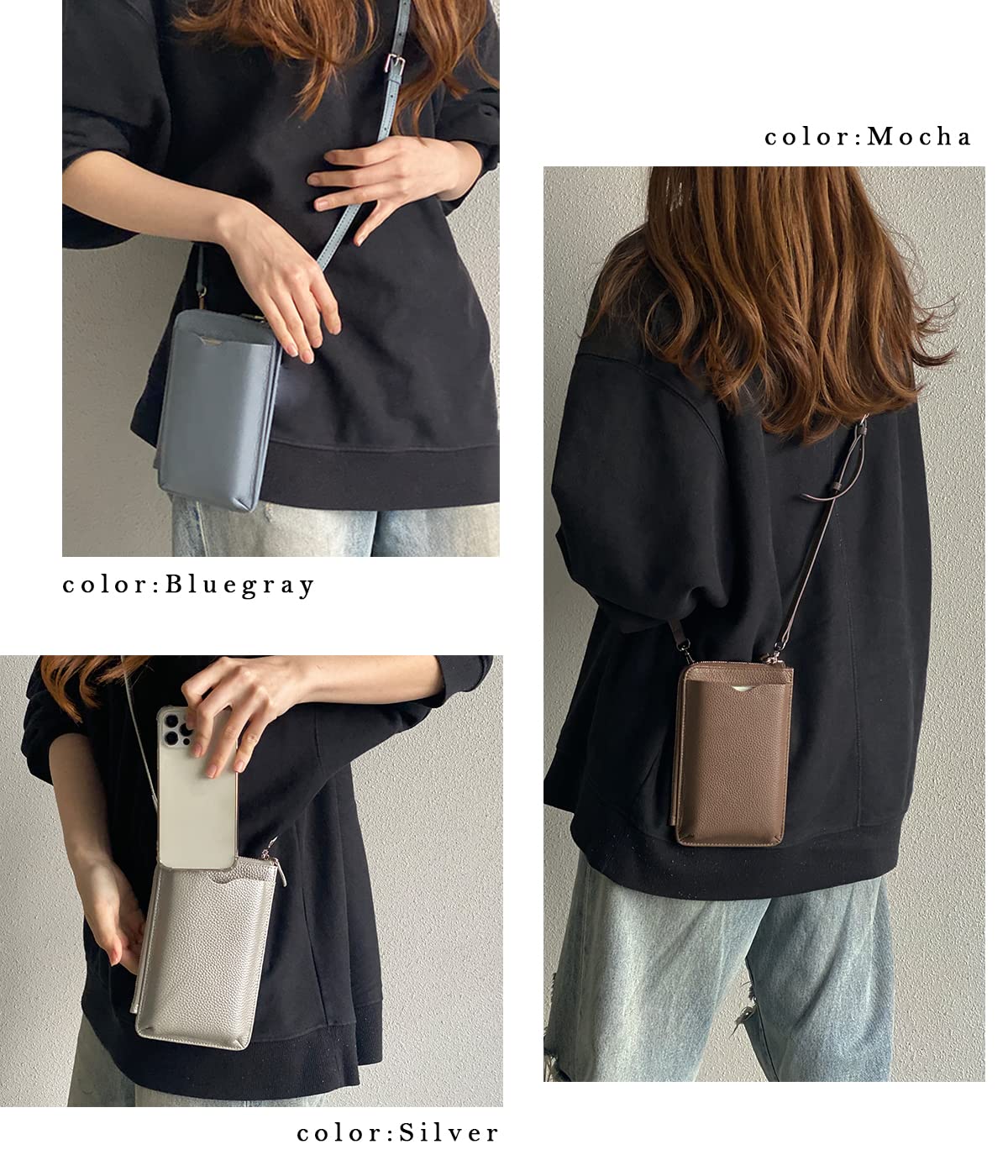[ジゼル] スマホショルダー スマホポーチ レディース ショルダーバッグ お財布ポシェット お財布ショルダー 斜め掛け 長財布 軽量 カードケース 縦型