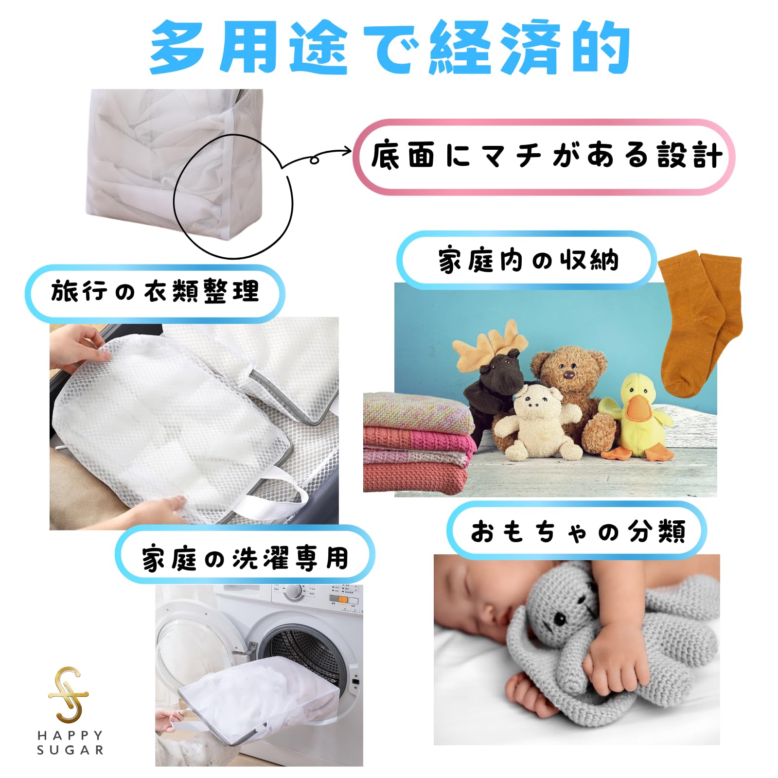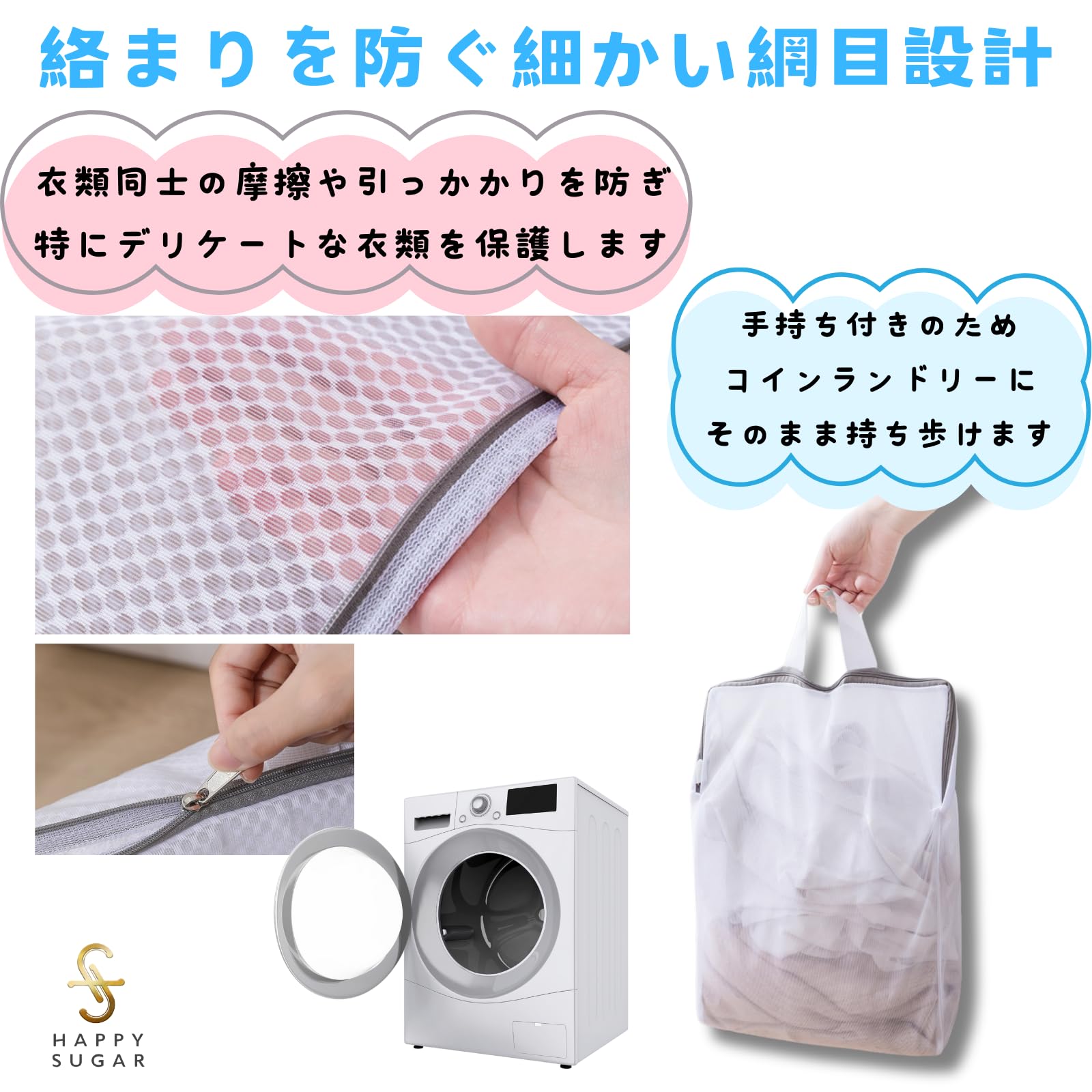 【特価商品】HAPPY SUGAR 洗濯ネット ランドリーバッグ ランドリーネット 大きめ 細かい メッシュ 手提げ マチあり 型崩れ防止 寝具 布団 洗濯機 ドラム式 2枚セット (S) | asaRulu0511