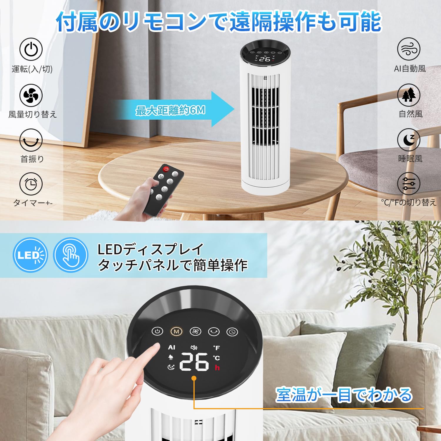 タワーファン 扇風機 羽なし 【2025夏新型・AI自動風】 タワー 扇風機 縦型 スリムファン DCモーター 省エネー 4段階風量調節 90°首振り 12Hタイマー 静音 LEDディスプレイ 4つのモード 小型 卓上 リビング オフィス 自宅 リモコン付き 節電対策 PSE認証済み