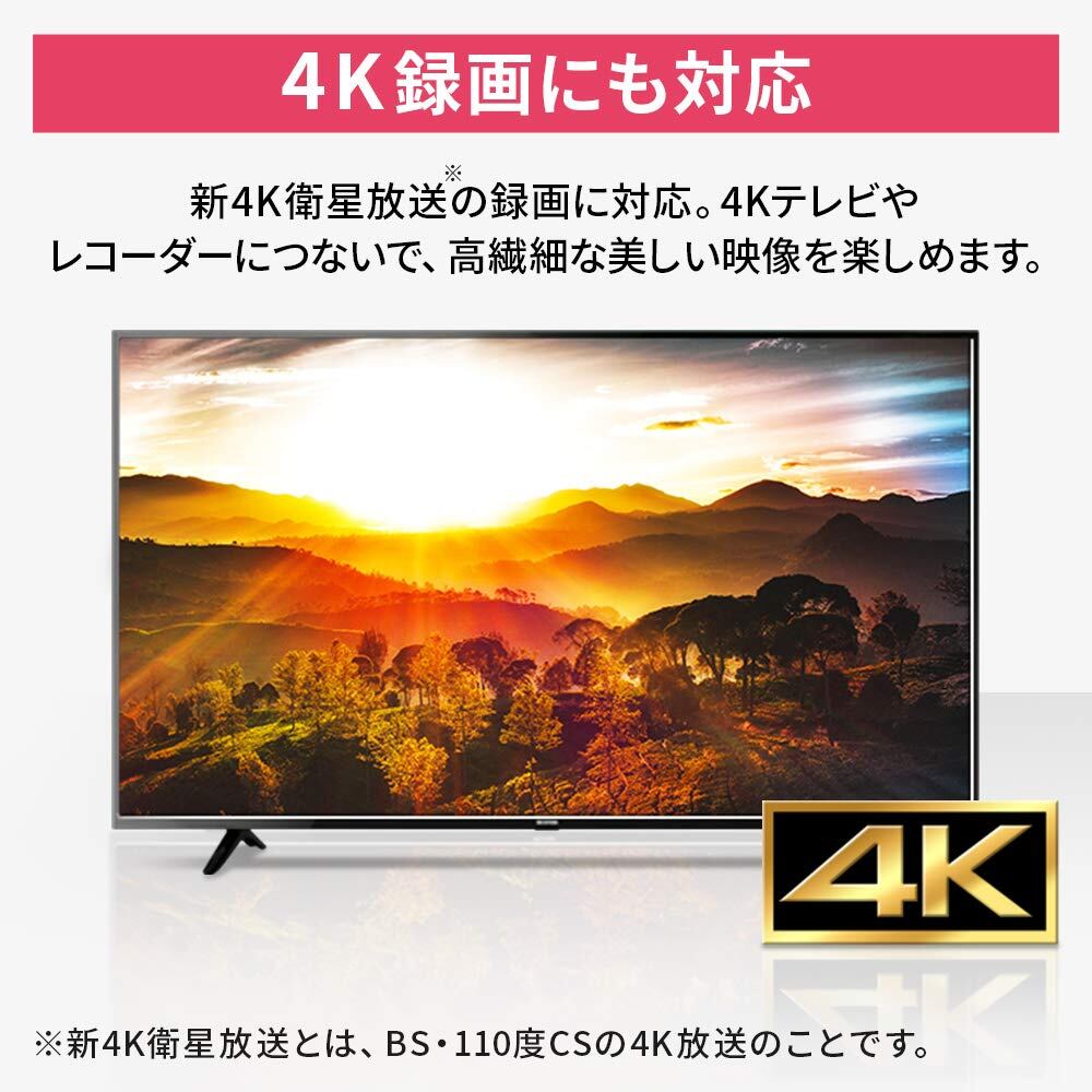 新4K衛星放送の録画対応なので、4Kテレビやレコーダーにつないで、高繊細な美しい映像を楽しめます。