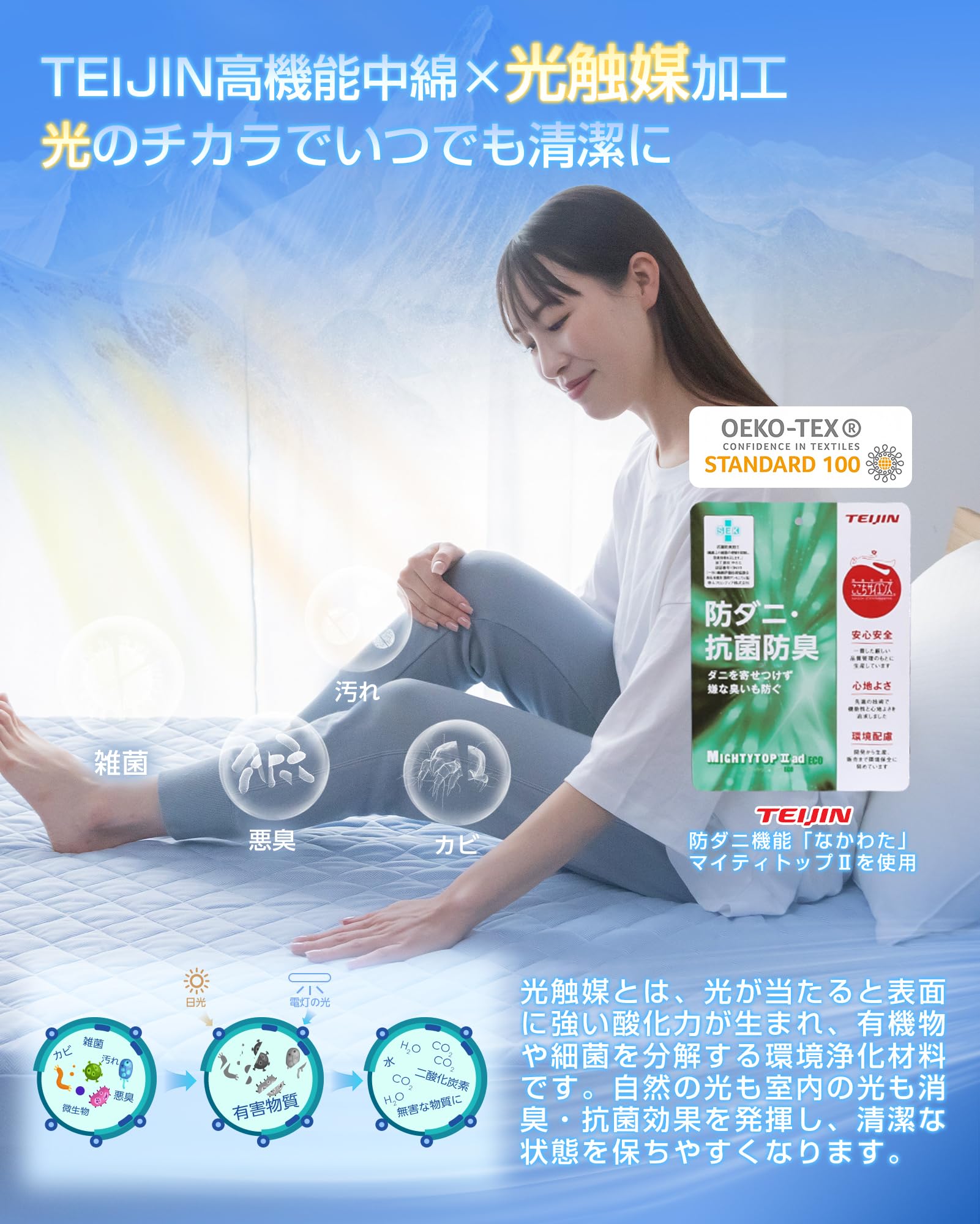 【取り付けらくらく360°滑り止め円周ゴム】ストレッチ性抜群な円周ゴム+伸びる側地、厚さ5~30Cmまでの敷ふとん・マットレスに着用が可能。表も側も、見た目がすっきり!一枚で完成するシングルさ、是非お試しください。