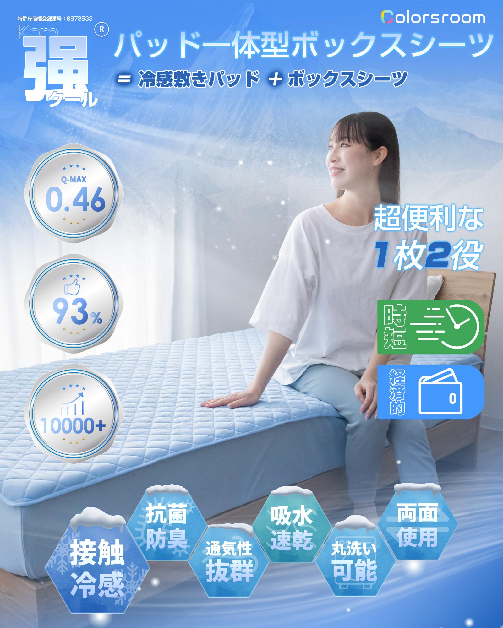 【2022最新】colorsroom パッド一体型ボックスシーツ 敷きパッド ダブル 夏用 接触冷感 ひんやり リバーシブル 両面使える TEIJINマイティトップⅡ追加 抗菌・防臭・防ダニ 冷感 シーツ ボックスシーツ 洗える 速乾 オールシーズン 140×200×25cm ブルー
