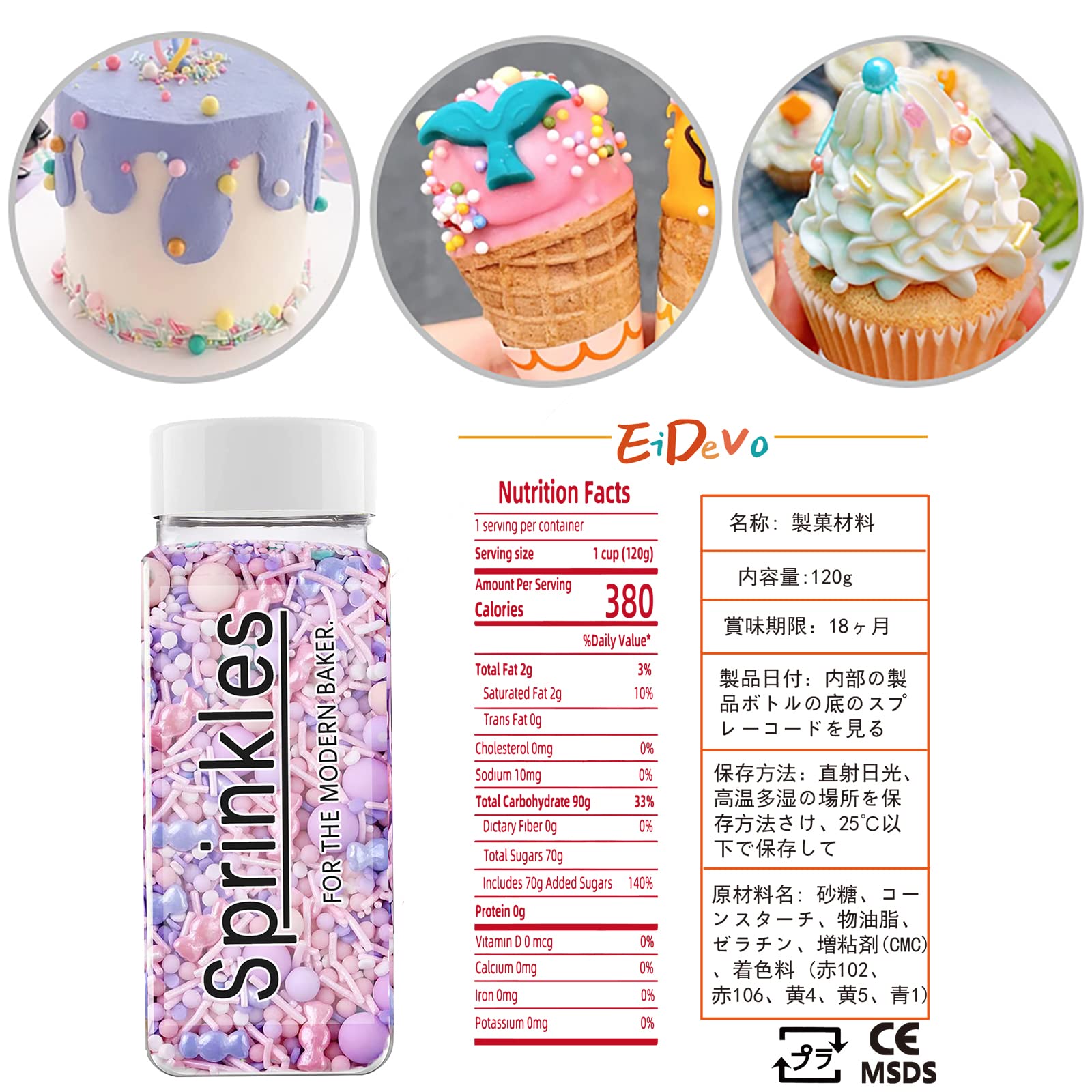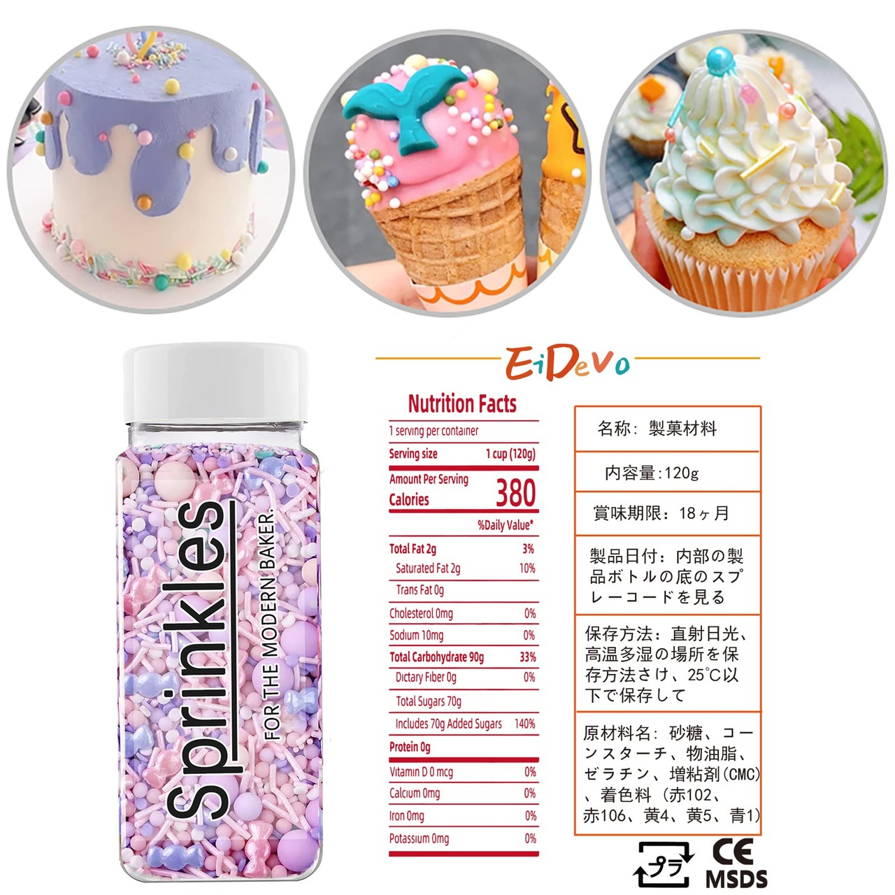 食品の装飾として広く使用されています、カップケーキやアイシングクッキー、ケーキなどに振り掛けるだけで華やかに飾れるたくさんの色の小さな粒状スプリンクルです。