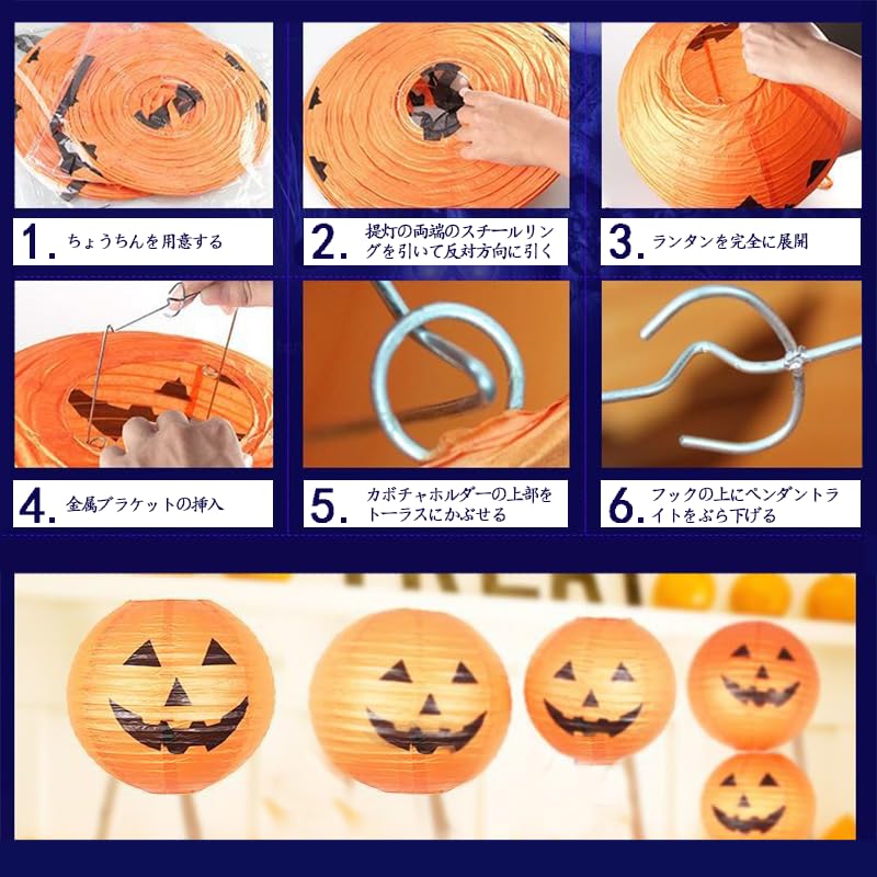 【セット内容】かぼちゃの紙ちょうちん 8個入り。(本製品にはランプが含まれていません。発光効果が必要な場合は、自分でランプを購入してください。)