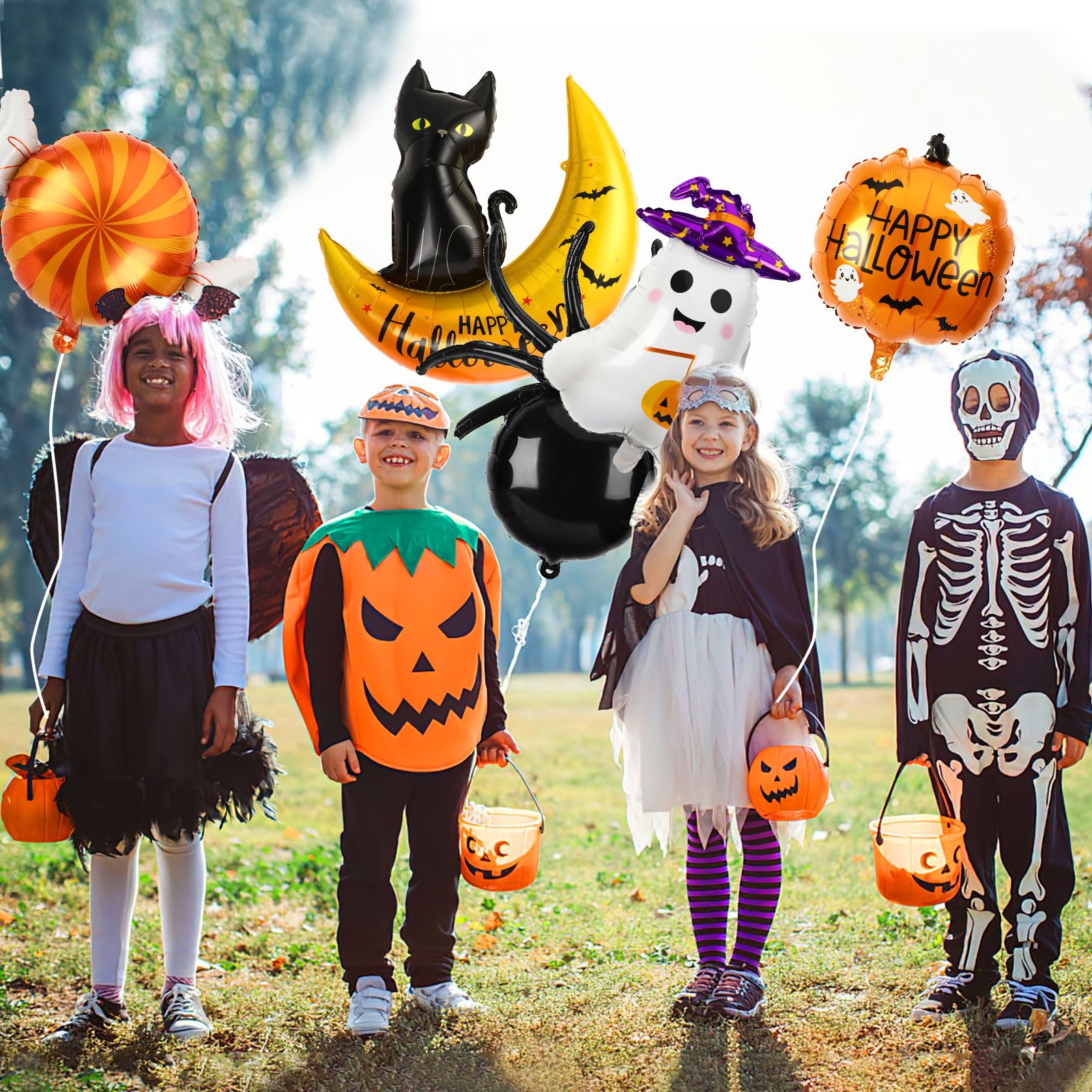 大量なセット:パッケージには合計14個のハロウィン バルーンが入っています。デザインはそれぞれ異なり、サイズも豊富です。逆止弁が付いているアルミバルーンなので、空気を抜くためにストローも付属しています