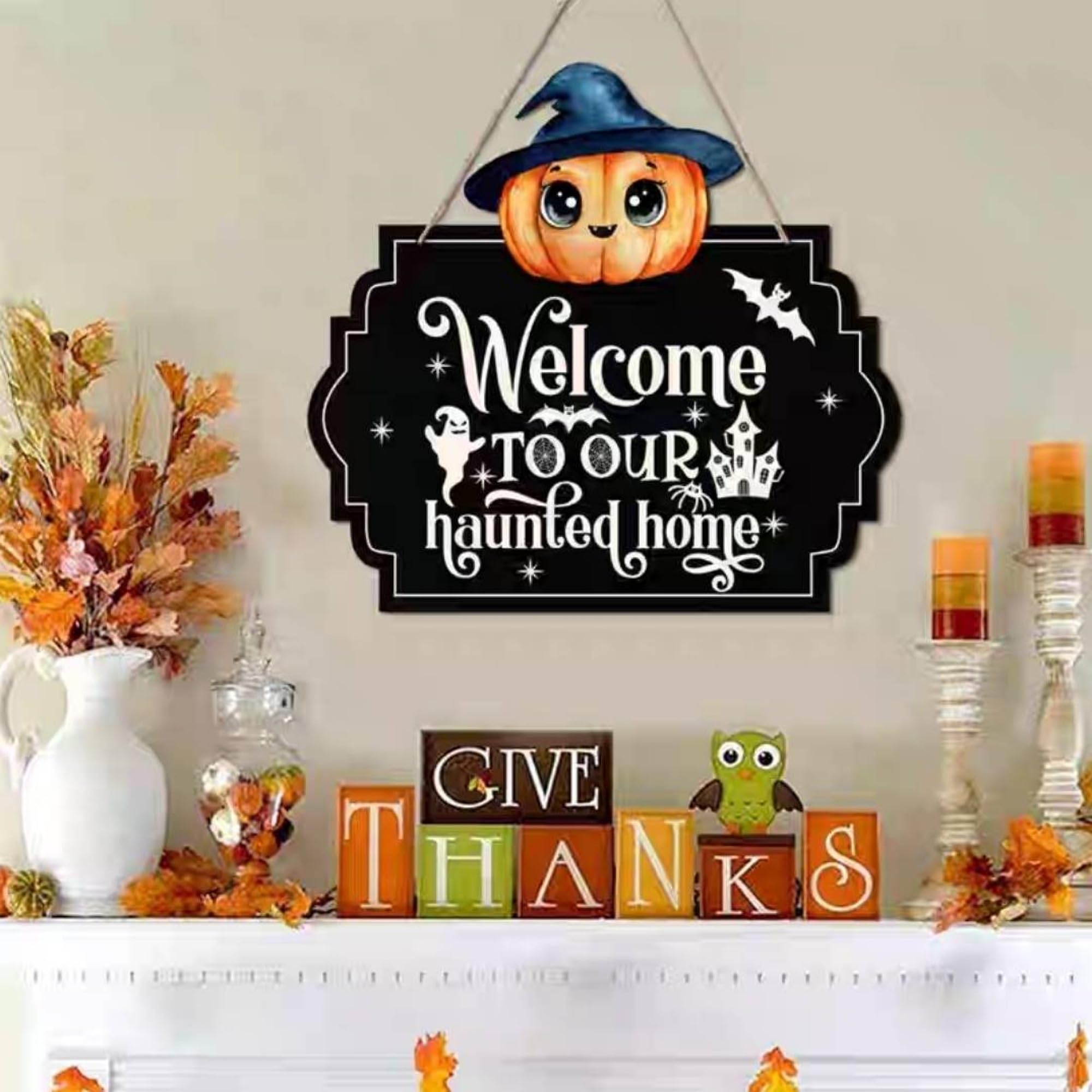 【可愛いパンプキンのハロウィンボード】毎日出入りするお家の玄関。この時期にはやっぱりハロウィン気分を味わいたいもの‼さっとお手軽に付けて気分は毎日ハロウィンモード~に。