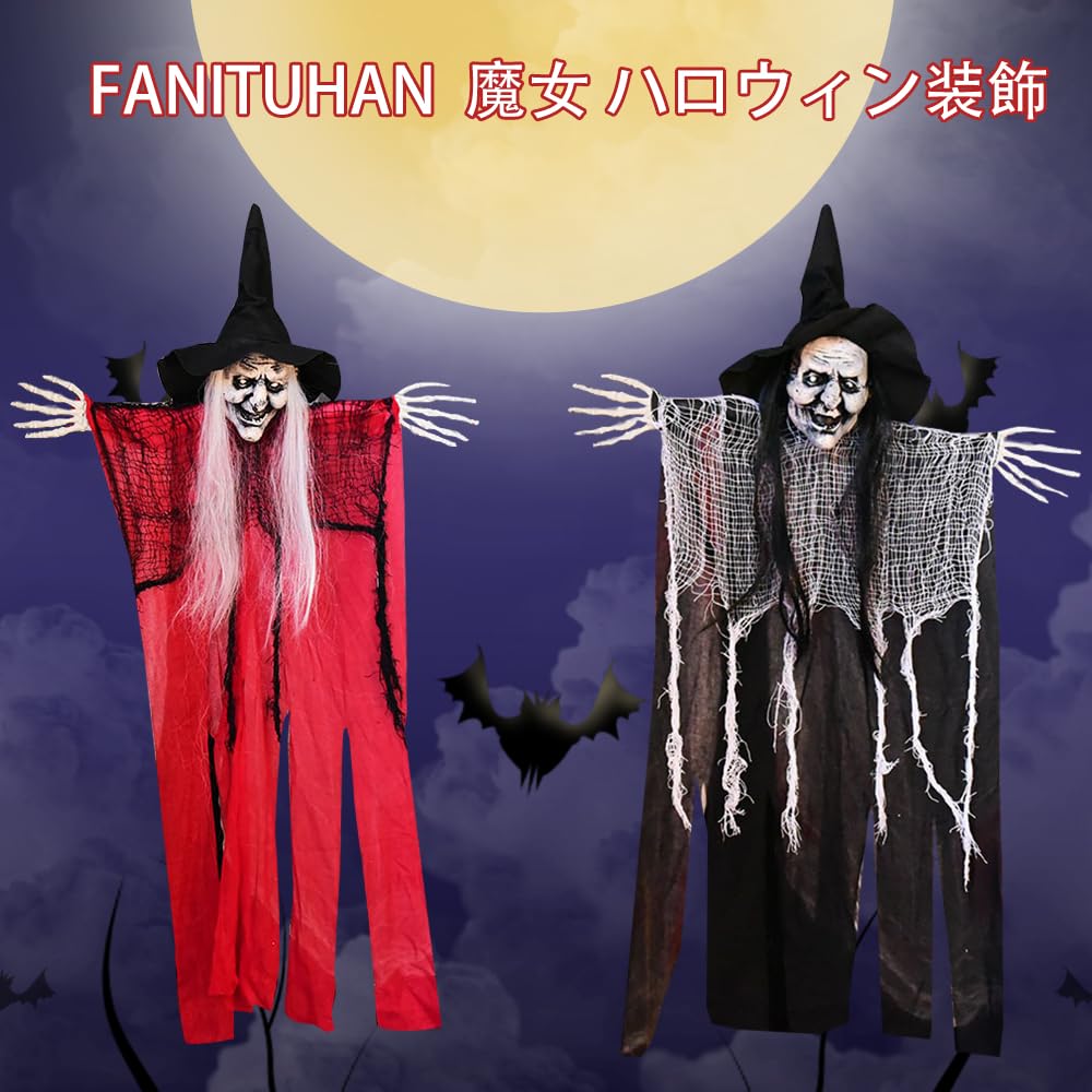 【2022最新】nacyvcos ハロウィーン 怖い飾り 吊り下げ ハンギング 魔女 ハロウィン装飾 怖い お化け屋敷 骸骨 不気味 幽霊 雰囲気満点 道具 ハンギングデコレーション パーティー お化け屋敷 家庭用 店舗 ドア 装飾 (レッド) | asaRulu0511