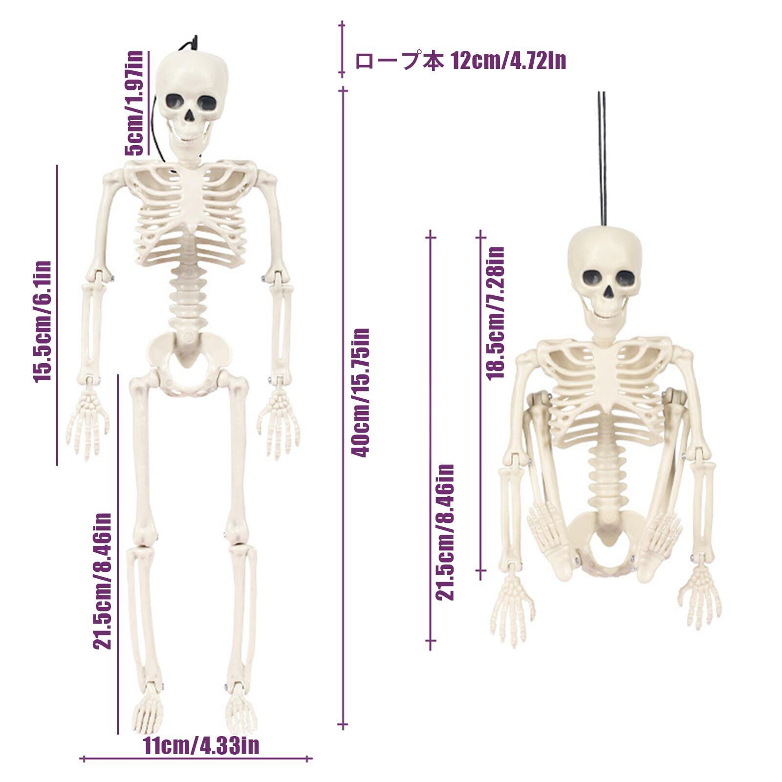 ハロウィン 飾り 骸骨 2個セット 約40cm スケルトン 怖い お化け屋敷 道具 装飾 関節可動式 髑髏 スカル ホラーグッズ 吊り下げ ハロウィン 飾り付け 置物 屋内 屋外 文化祭 学園祭