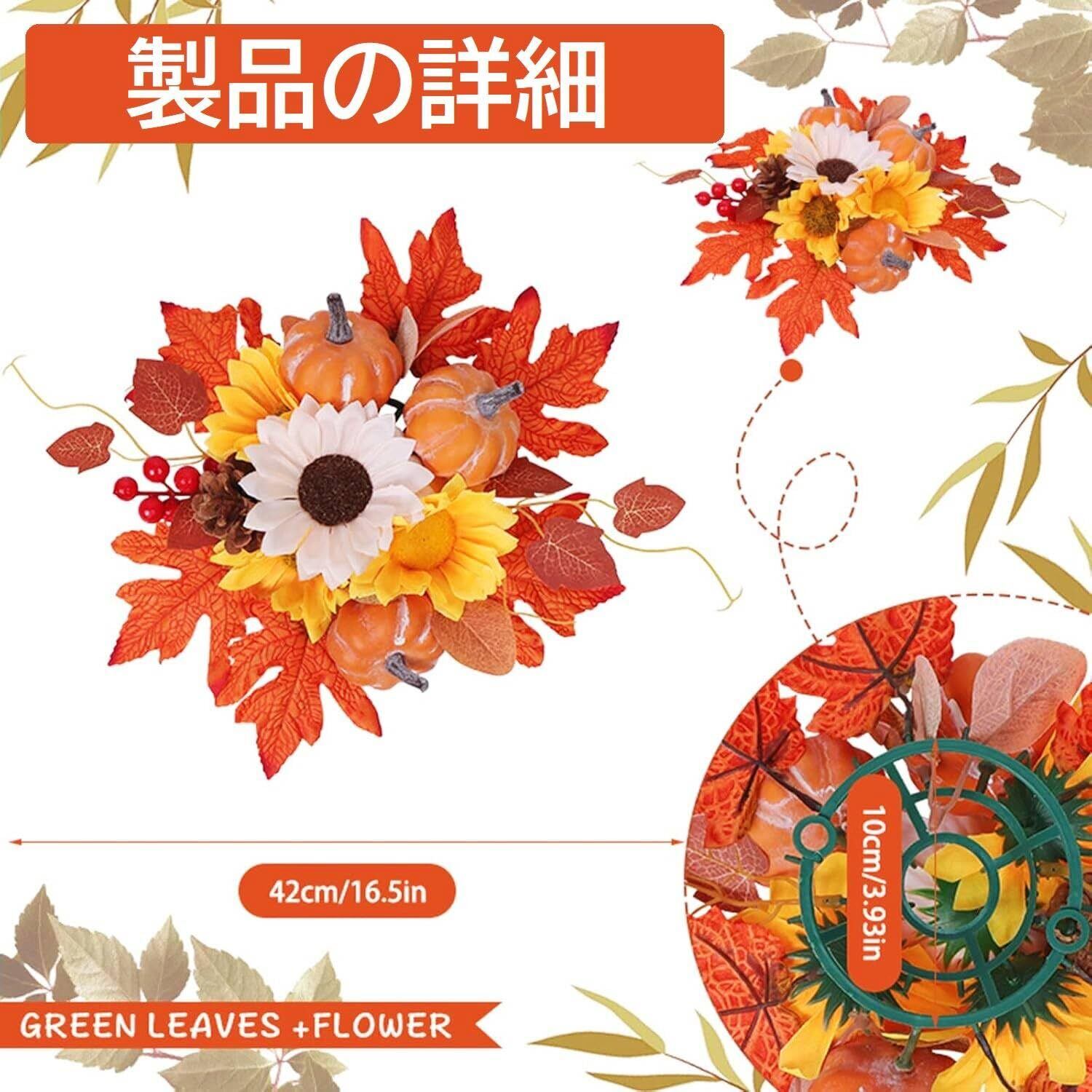 koundeneko ハロウィン飾り 花輪 感謝祭 秋のリース カエデの葉 ヒマワリ カボチャ 組み合わせ パンプキン装飾 ハロウィン雰囲気 テーブルセンターピース 玄関 ドア装飾 店舗用 季節飾り