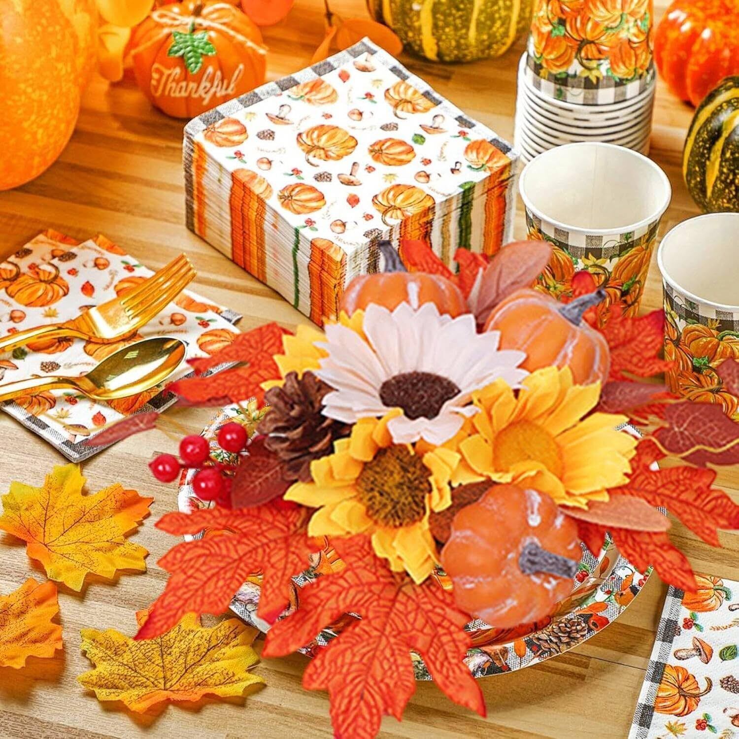 「秋の雰囲気を一気に演出」:カエデの葉、ヒマワリ、カボチャなど、秋を象徴するモチーフをふんだんに使用。ひと目で季節感が伝わり、温かみのある空間を演出します。オレンジやレッドを基調としたデザインは、ハロウィンパーティーにも感謝祭のデコレーションにもぴったり。